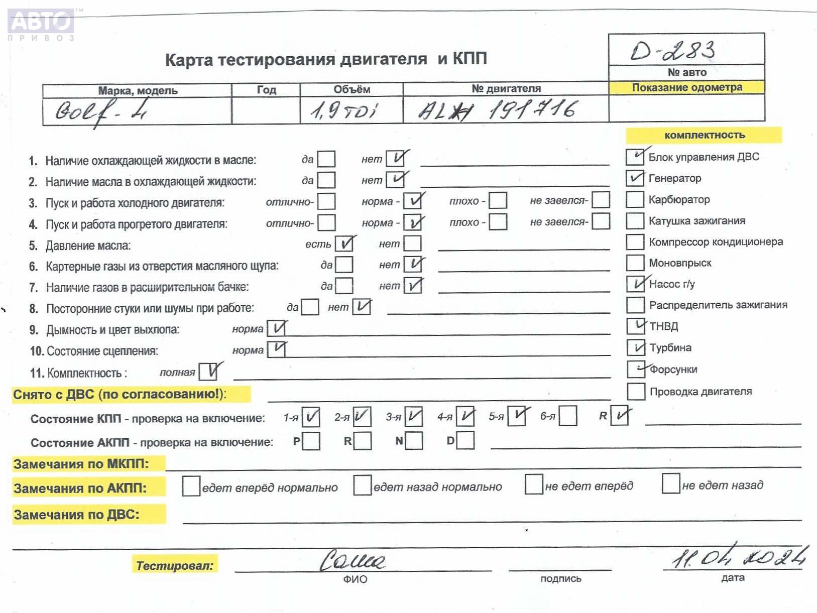 | Автомобиль / VIN: | D0283 WVWZZZ1JZYW402697 |