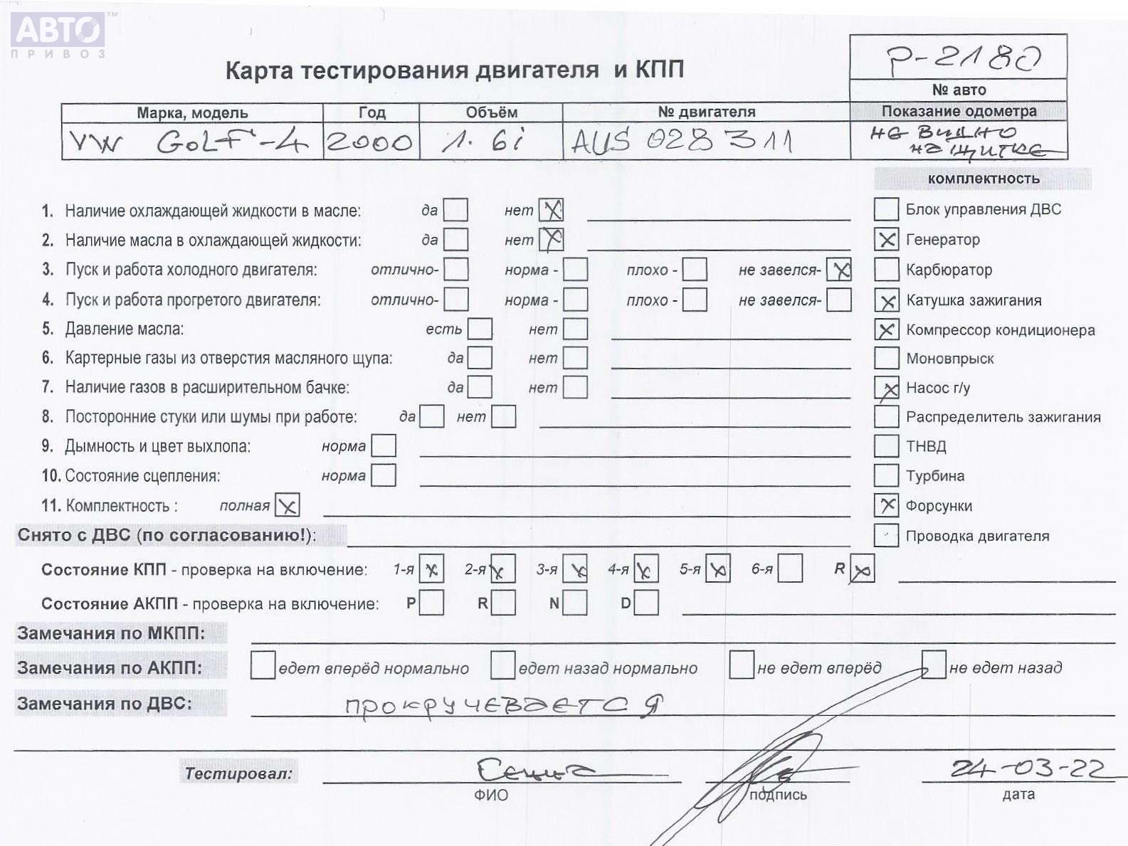| Марка / Модель / Год: | Volkswagen Golf-4 2000 |