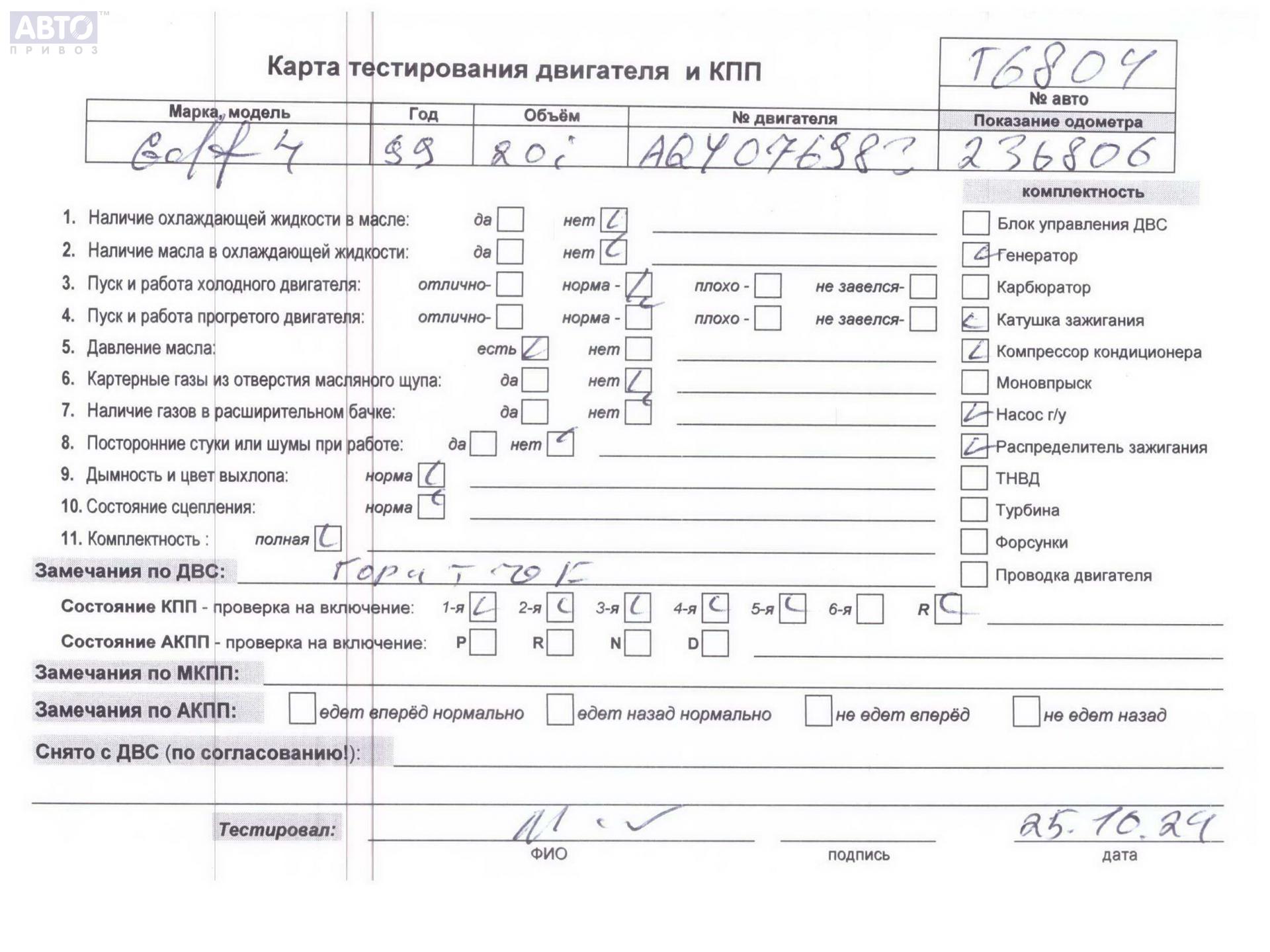 | Автомобиль / VIN: | T6804 WVWZZZ1JZYW450028 |