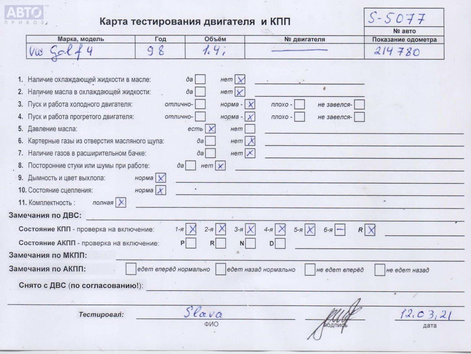 | Марка / Модель / Год: | Volkswagen Golf-4 1998 |