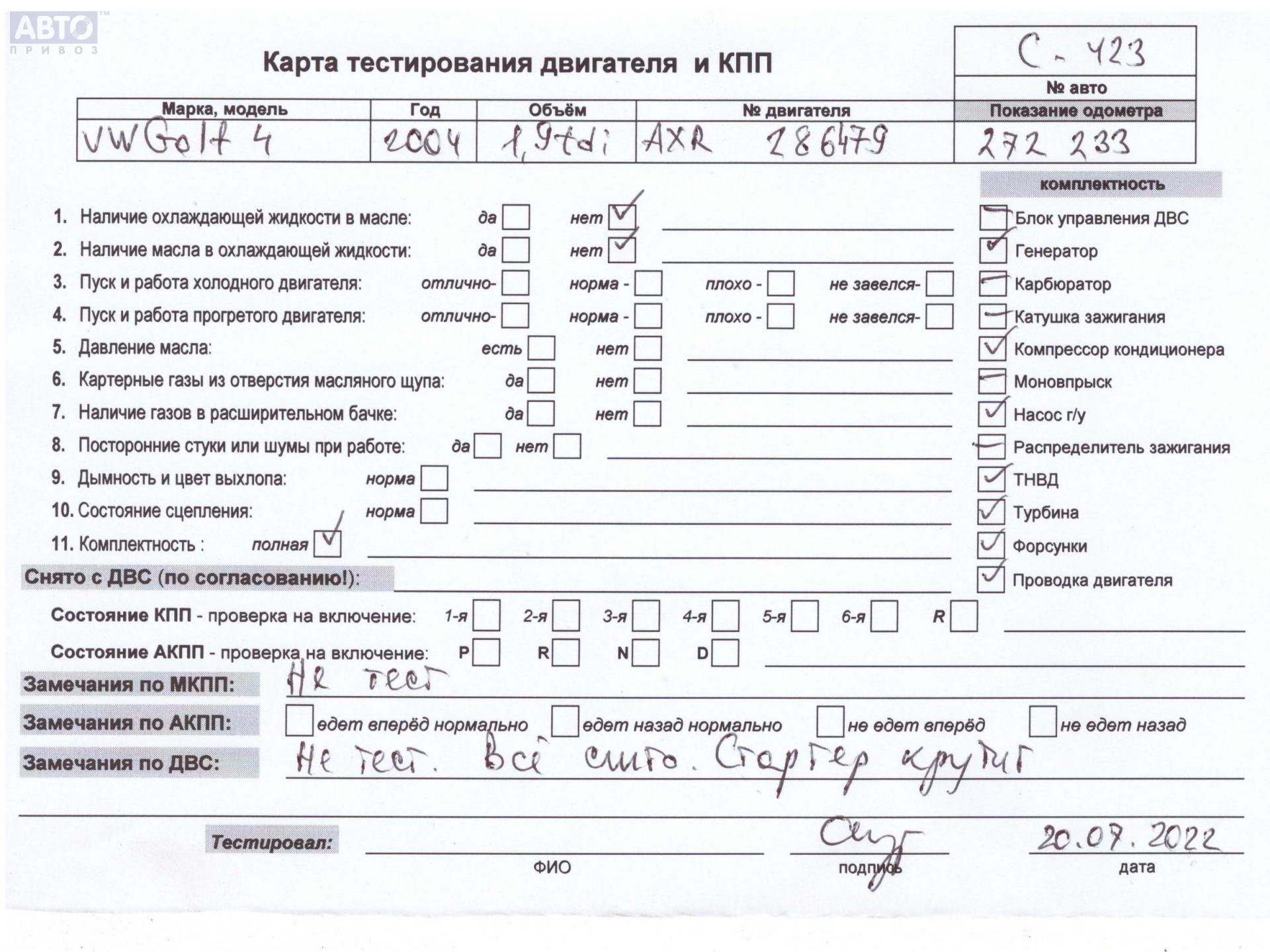 | Марка / Модель / Год: | Volkswagen Golf-4 2004 |