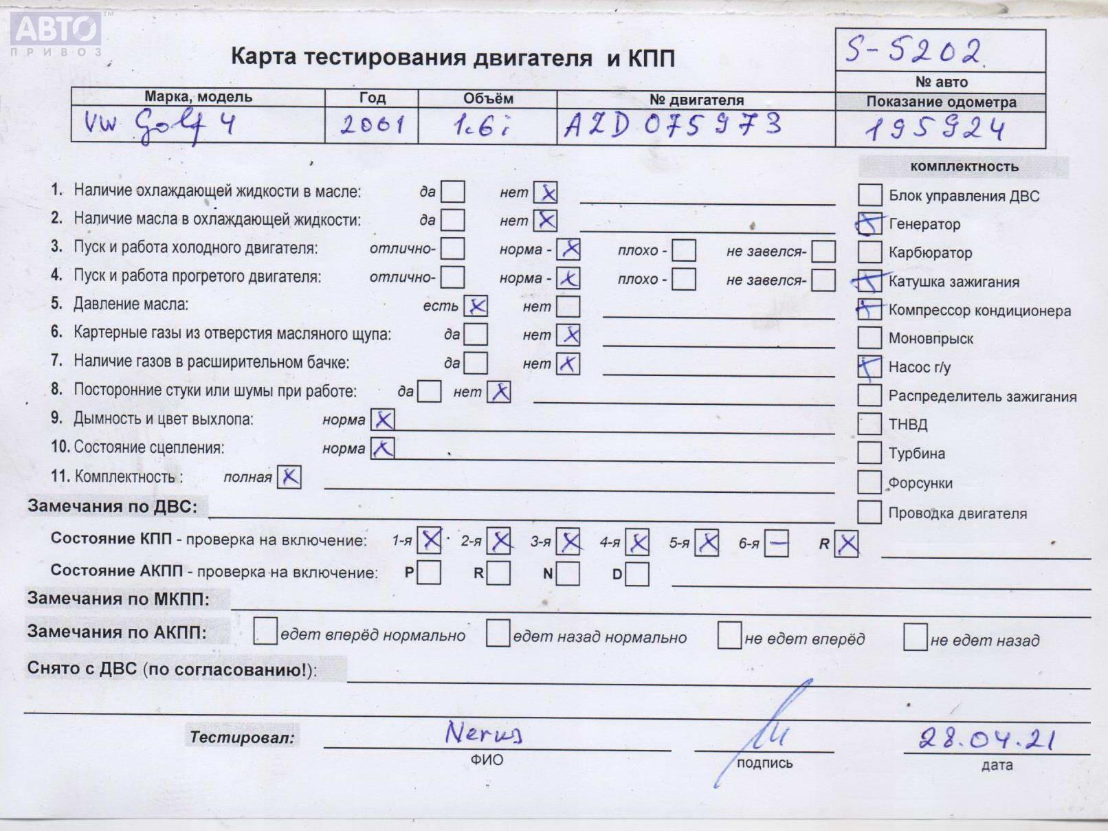 | Марка / Модель / Год: | Volkswagen Golf-4 2001 |