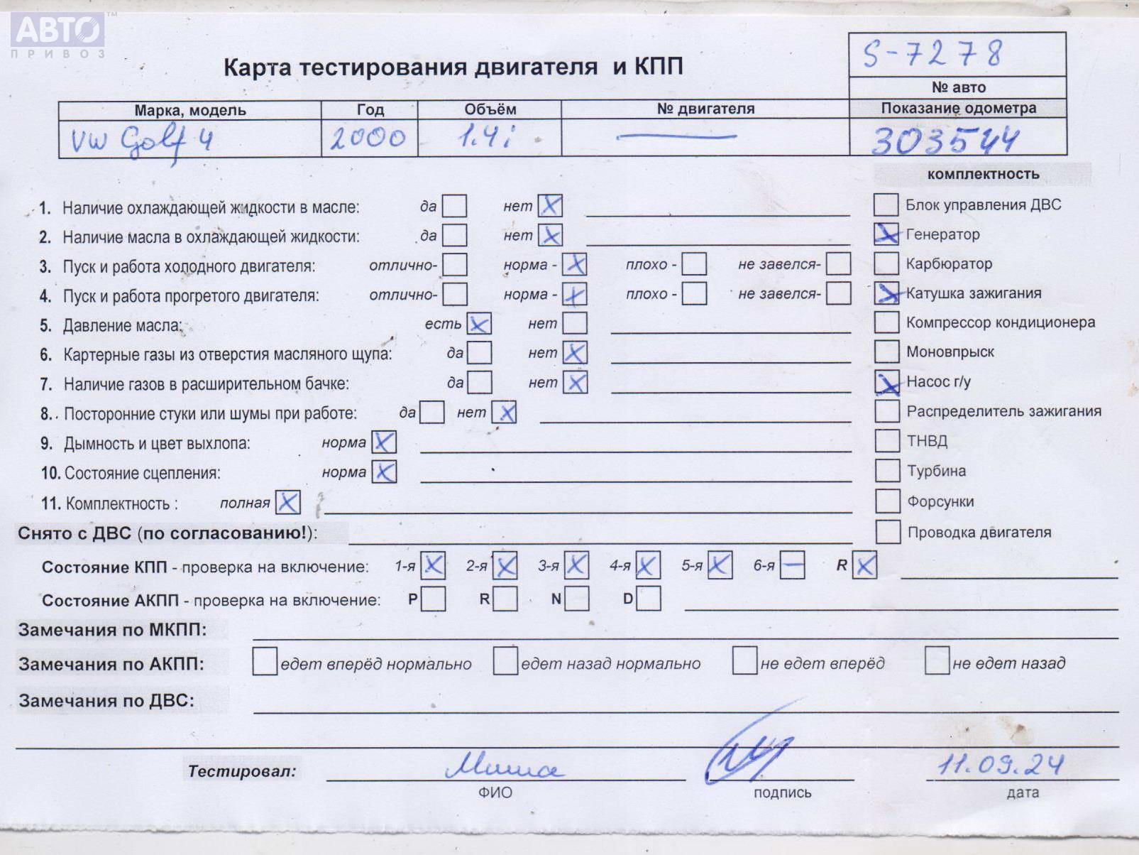 | Марка / Модель / Год: | Volkswagen Golf-4 2000 |