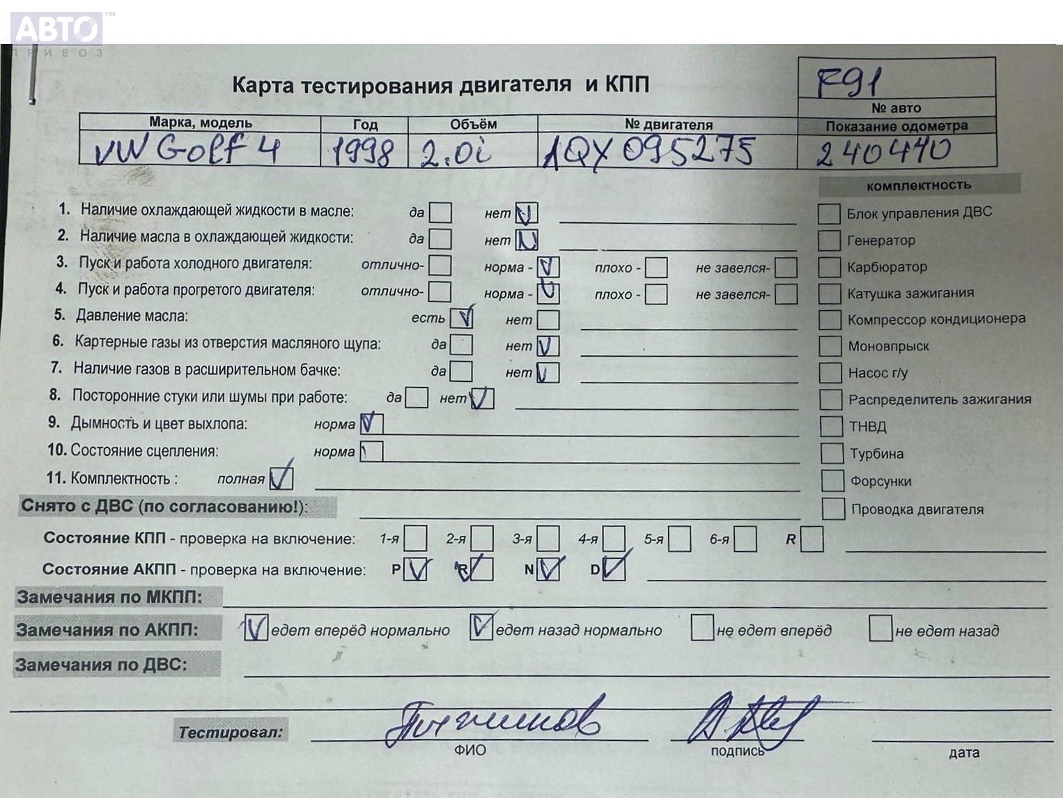 | Марка / Модель / Год: | Volkswagen Golf-4 2000 |