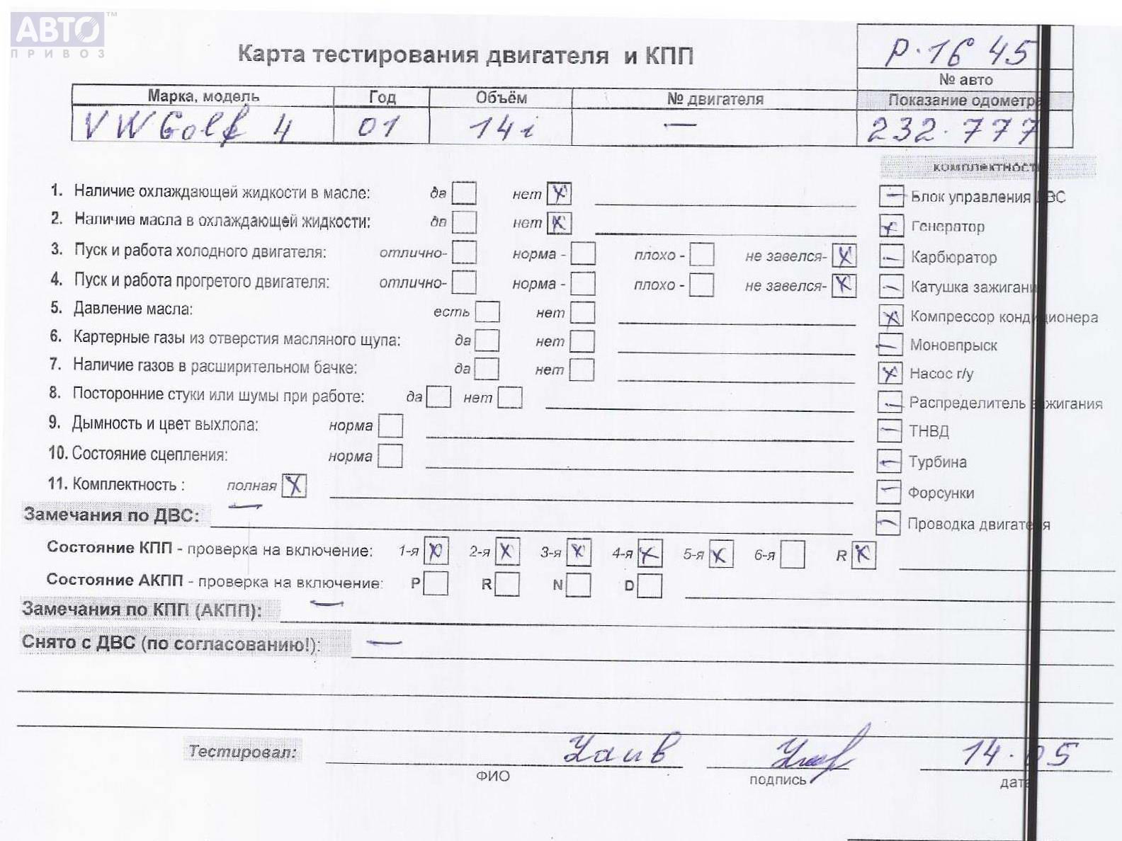 | Марка / Модель / Год: | Volkswagen Golf-4 2001 |
