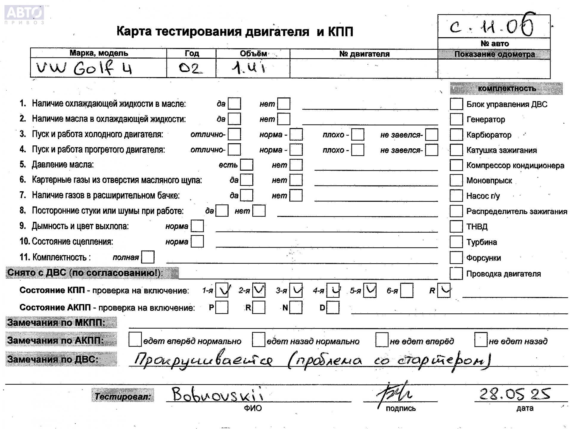 | Марка / Модель / Год: | Volkswagen Golf-4 2001 |