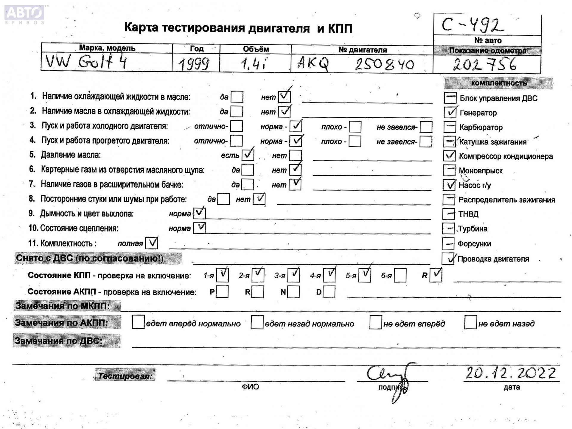 | Марка / Модель / Год: | Volkswagen Golf-4 1999 |