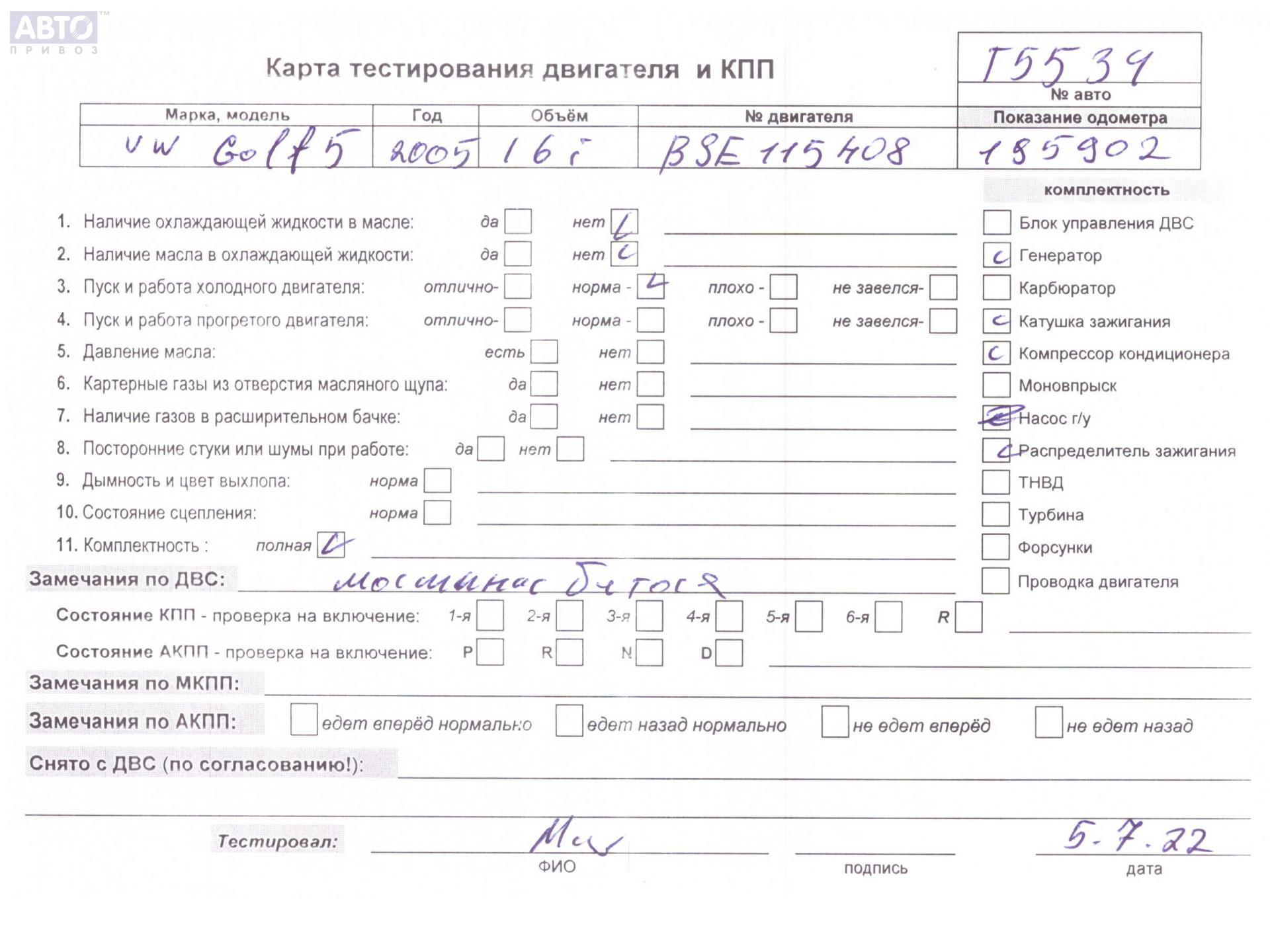 | Автомобиль / VIN: | T5534 WVWZZZ1KZ6W574040 |