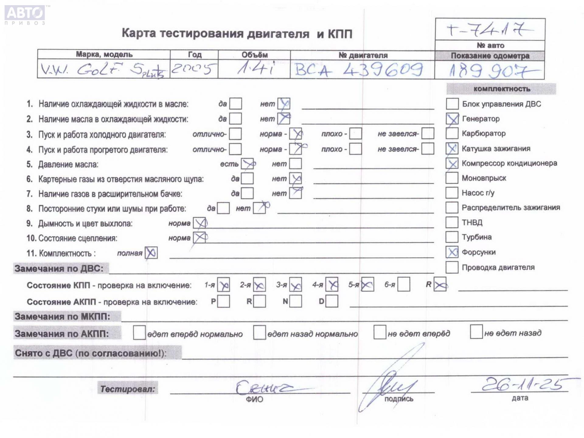| Марка / Модель / Год: | Volkswagen Golf-5 Plus 2005 |