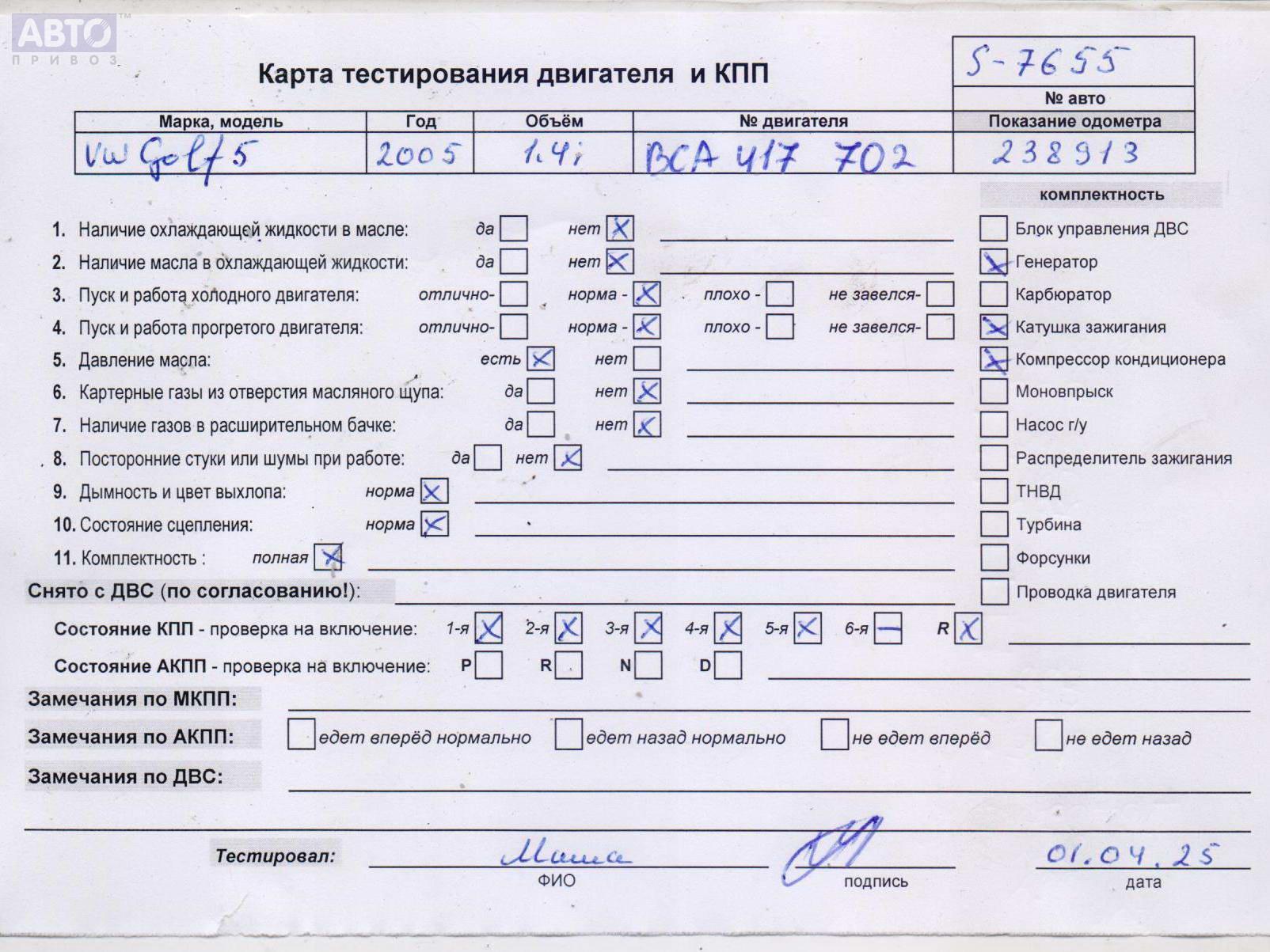 | Марка / Модель / Год: | Volkswagen Golf-5 2005 |