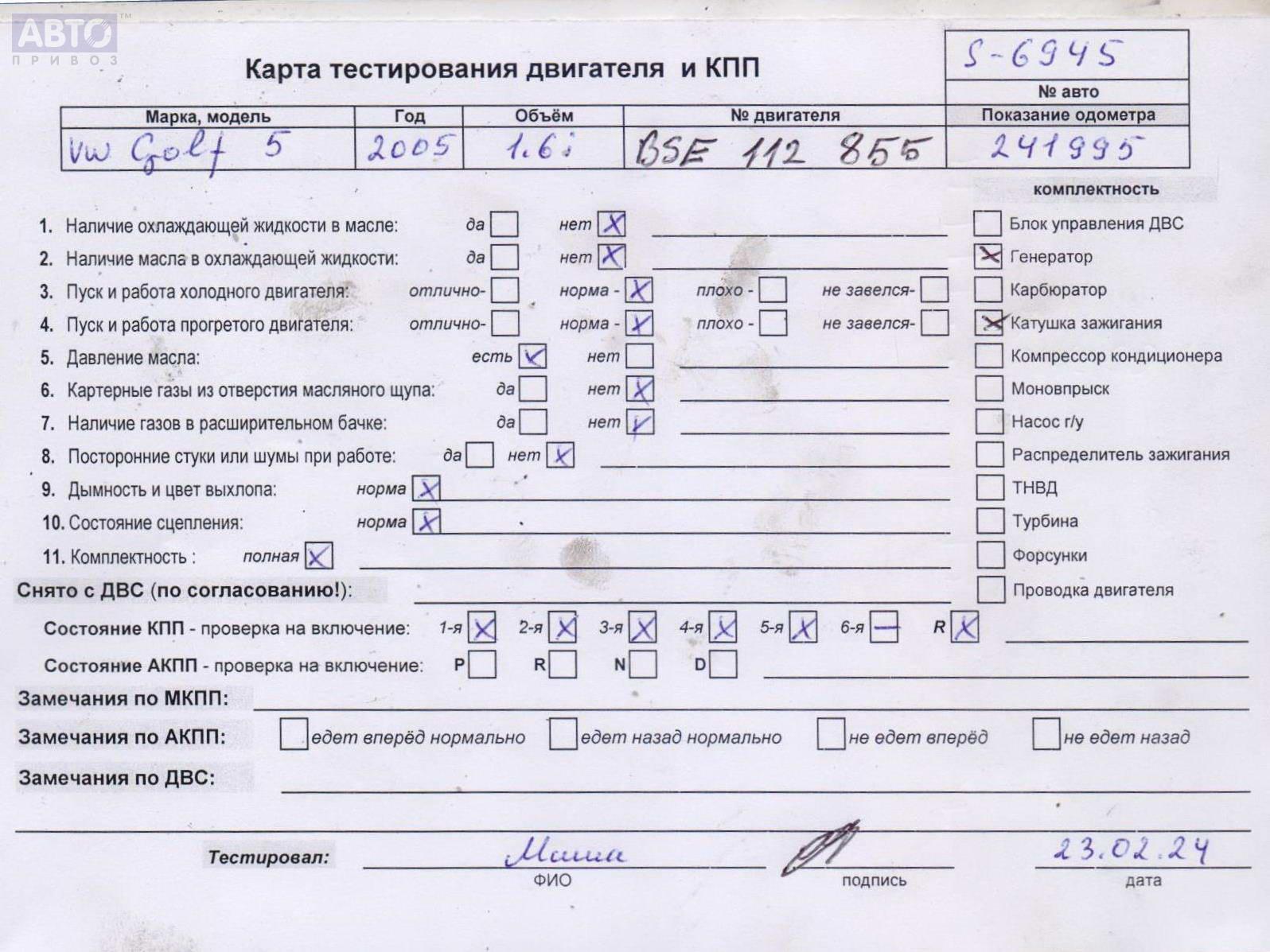 | Марка / Модель / Год: | Volkswagen Golf-5 2005 |