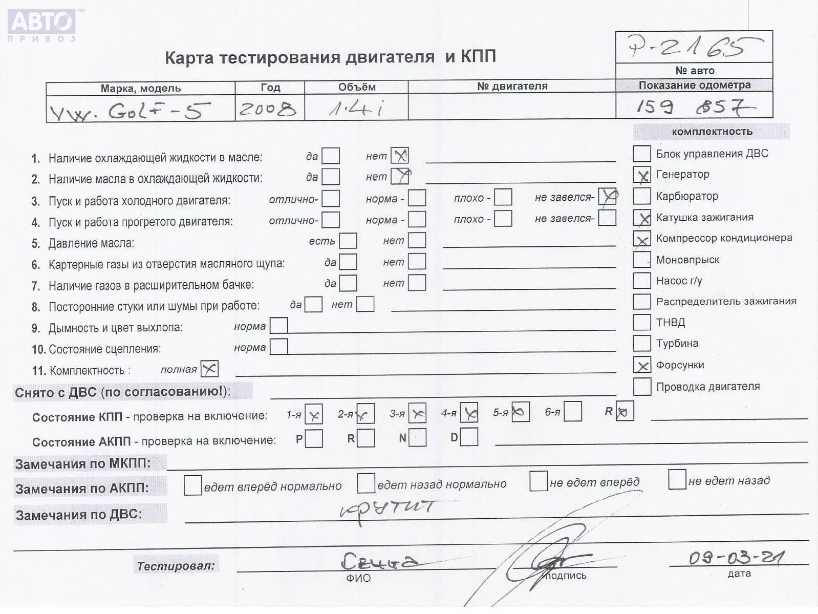 | Марка / Модель / Год: | Volkswagen Golf-5 2008 |