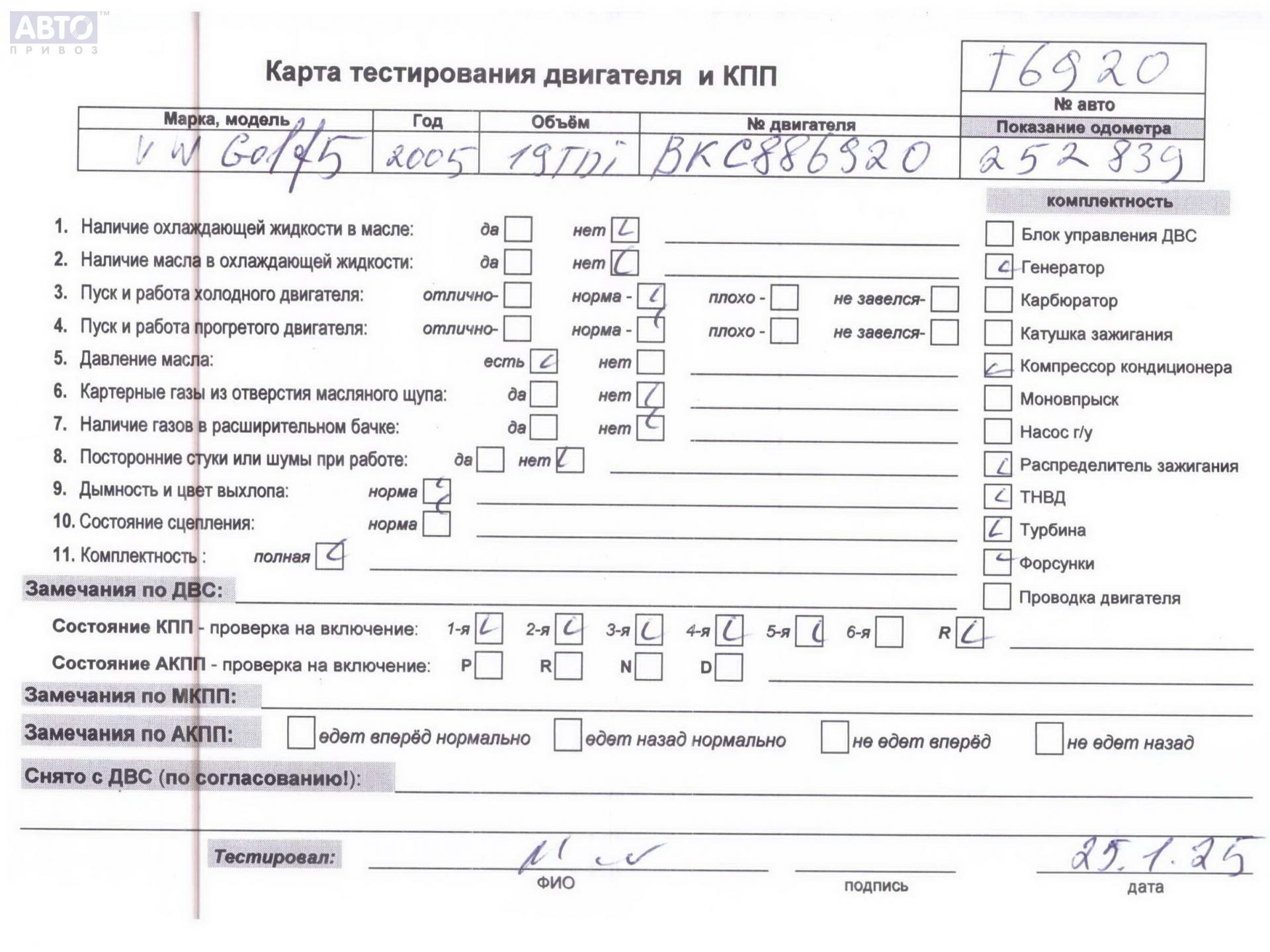 | Марка / Модель / Год: | Volkswagen Golf-5 2005 |