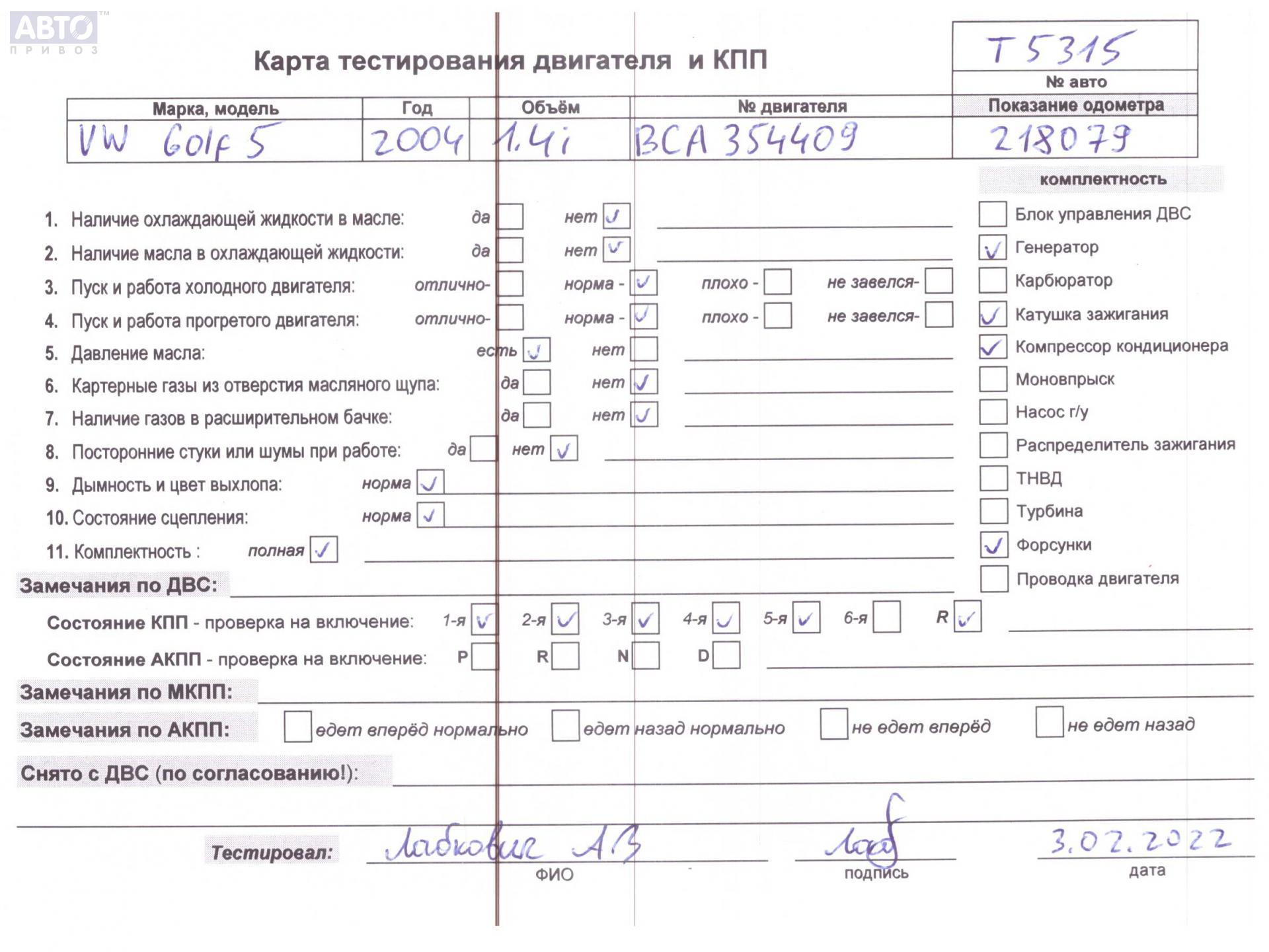 | Марка / Модель / Год: | Volkswagen Golf-5 2004 |