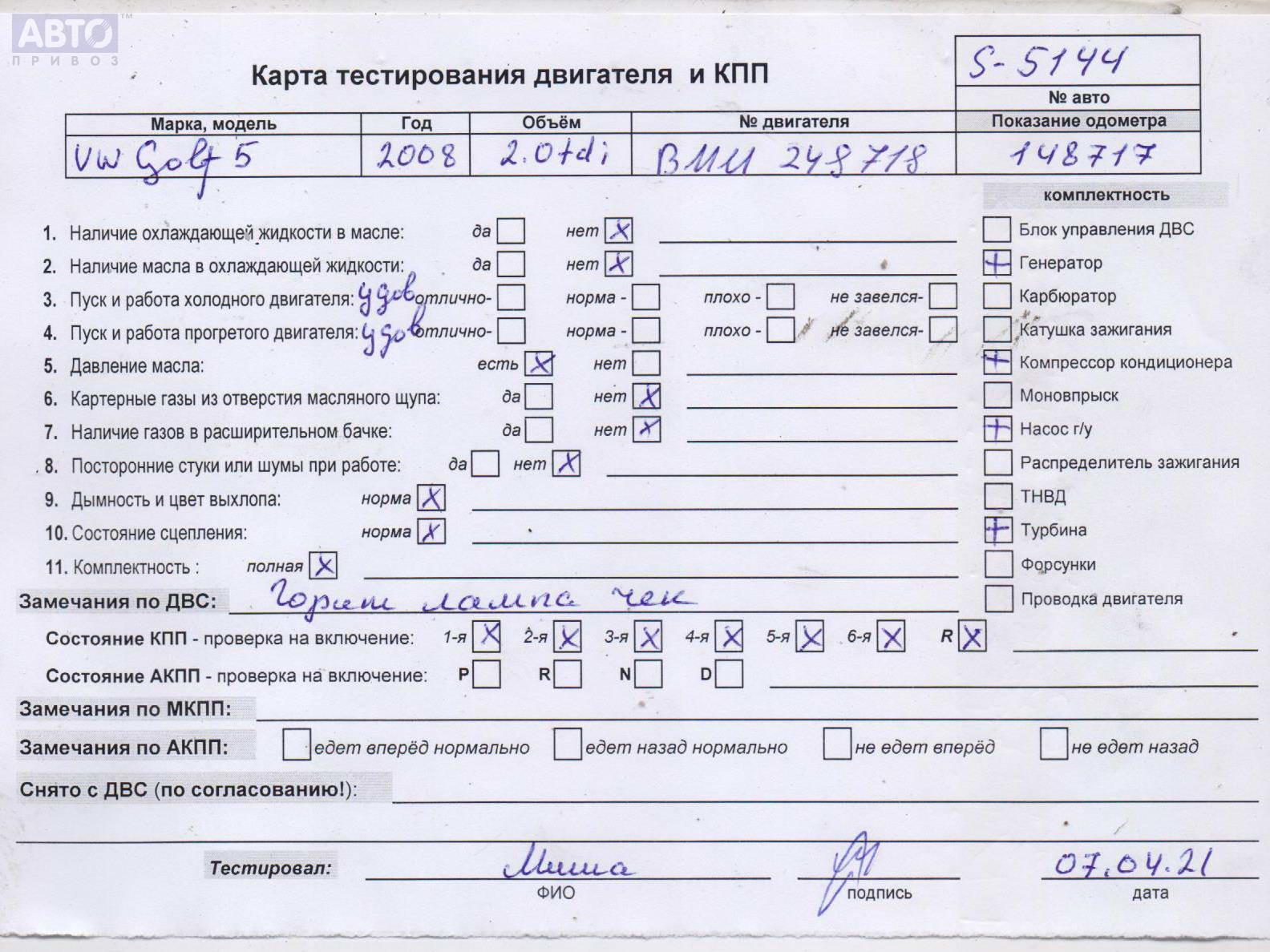 | Марка / Модель / Год: | Volkswagen Golf-5 2008 |