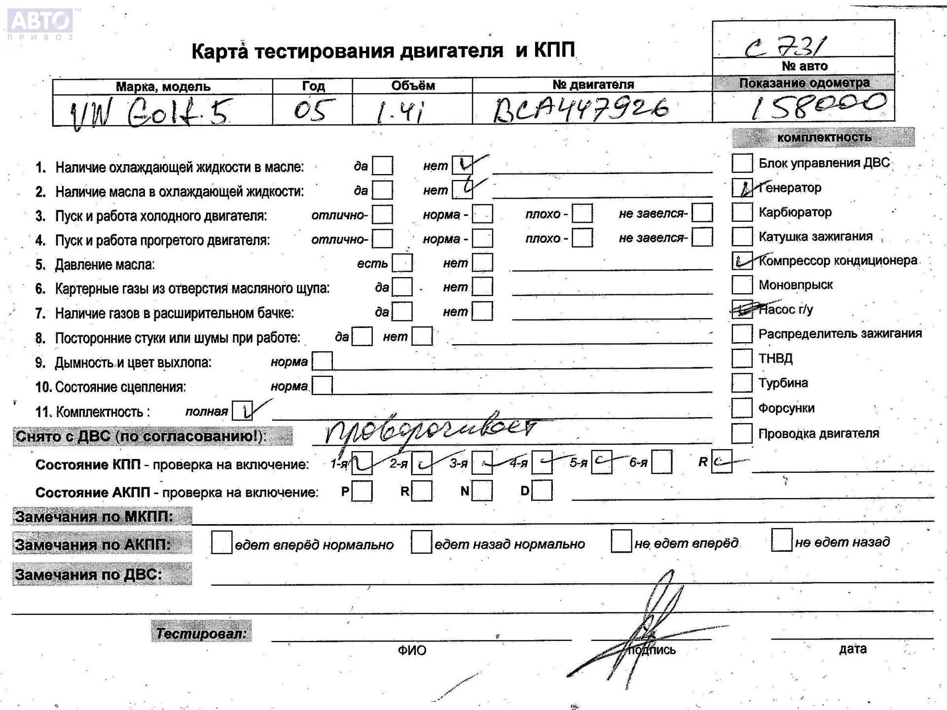 | Автомобиль / VIN: | C0731 WVWZZZ1KZ6W116308 |
