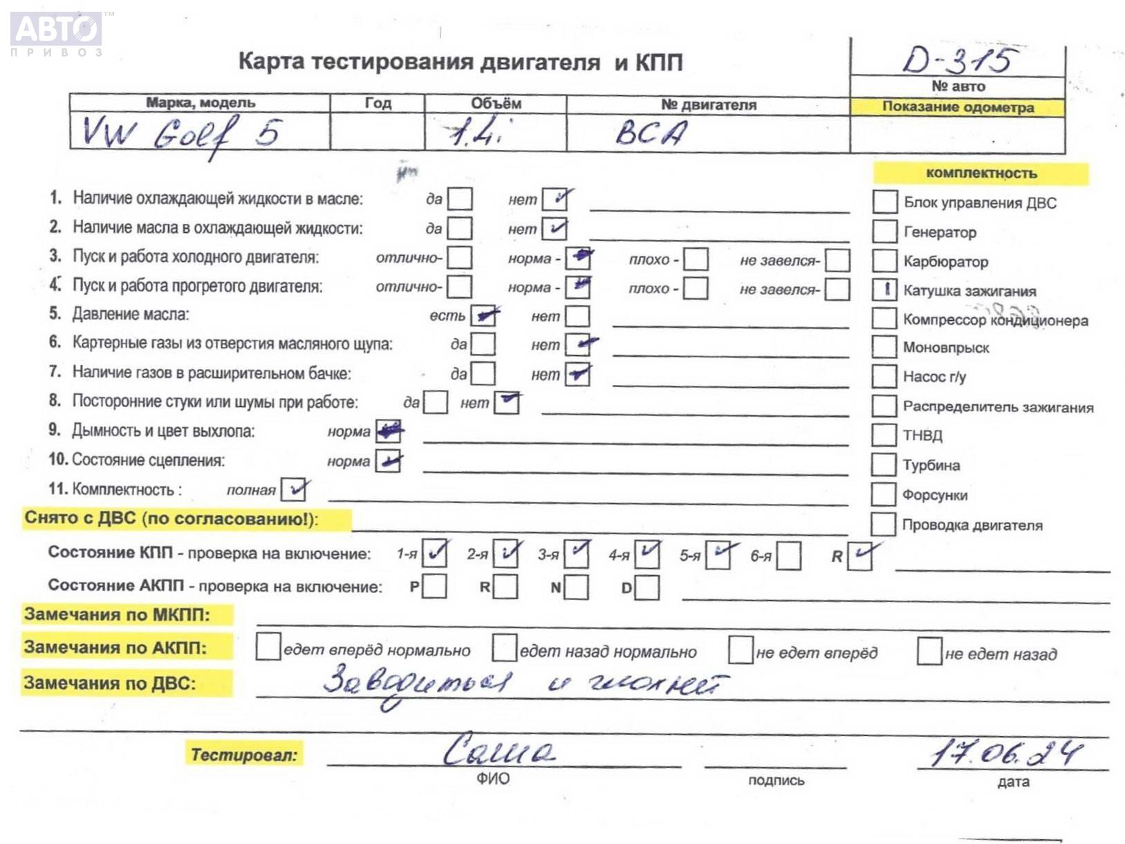 | Марка / Модель / Год: | Volkswagen Golf-5 2005 |