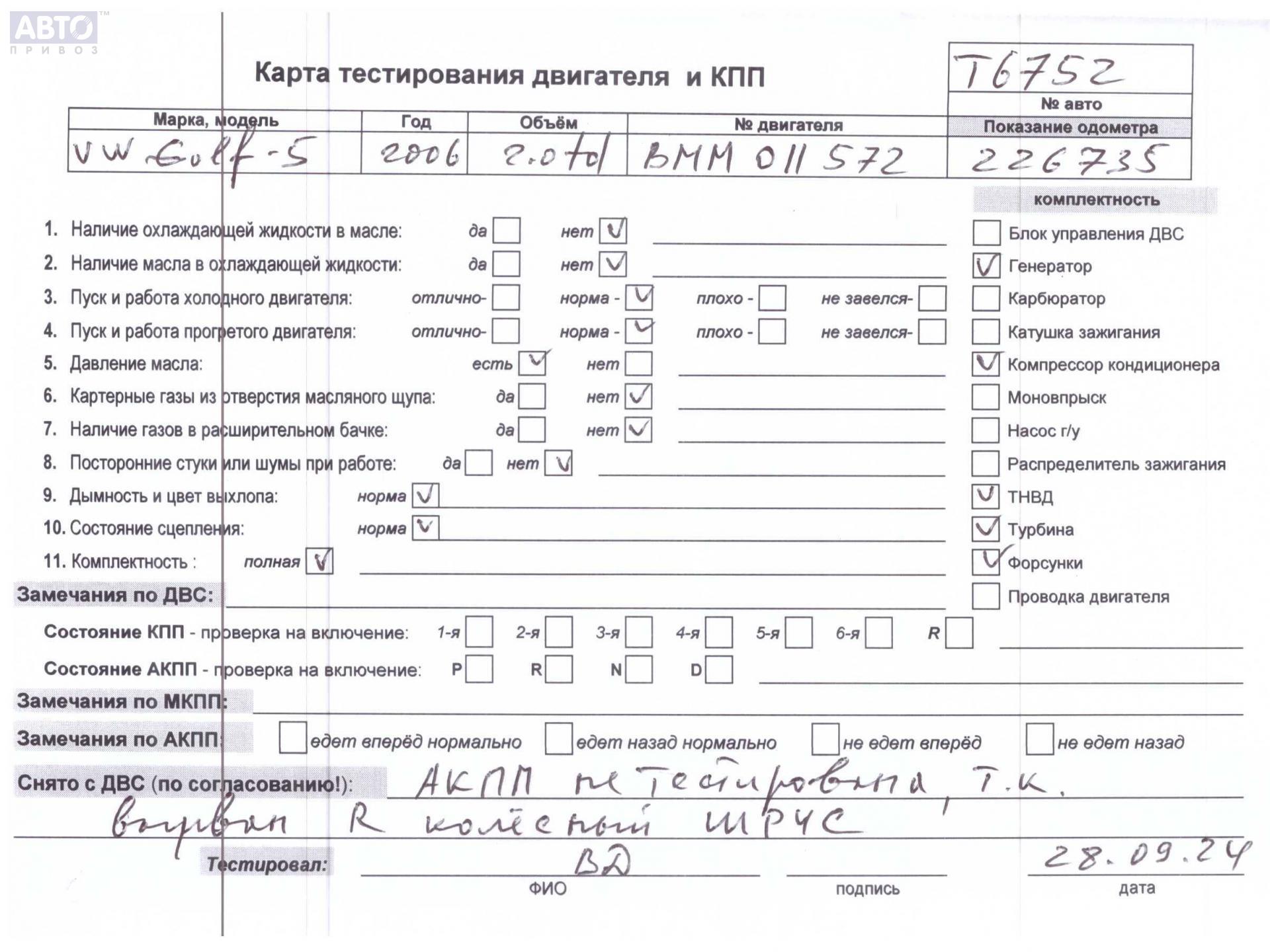 | Марка / Модель / Год: | Volkswagen Golf-5 2006 |