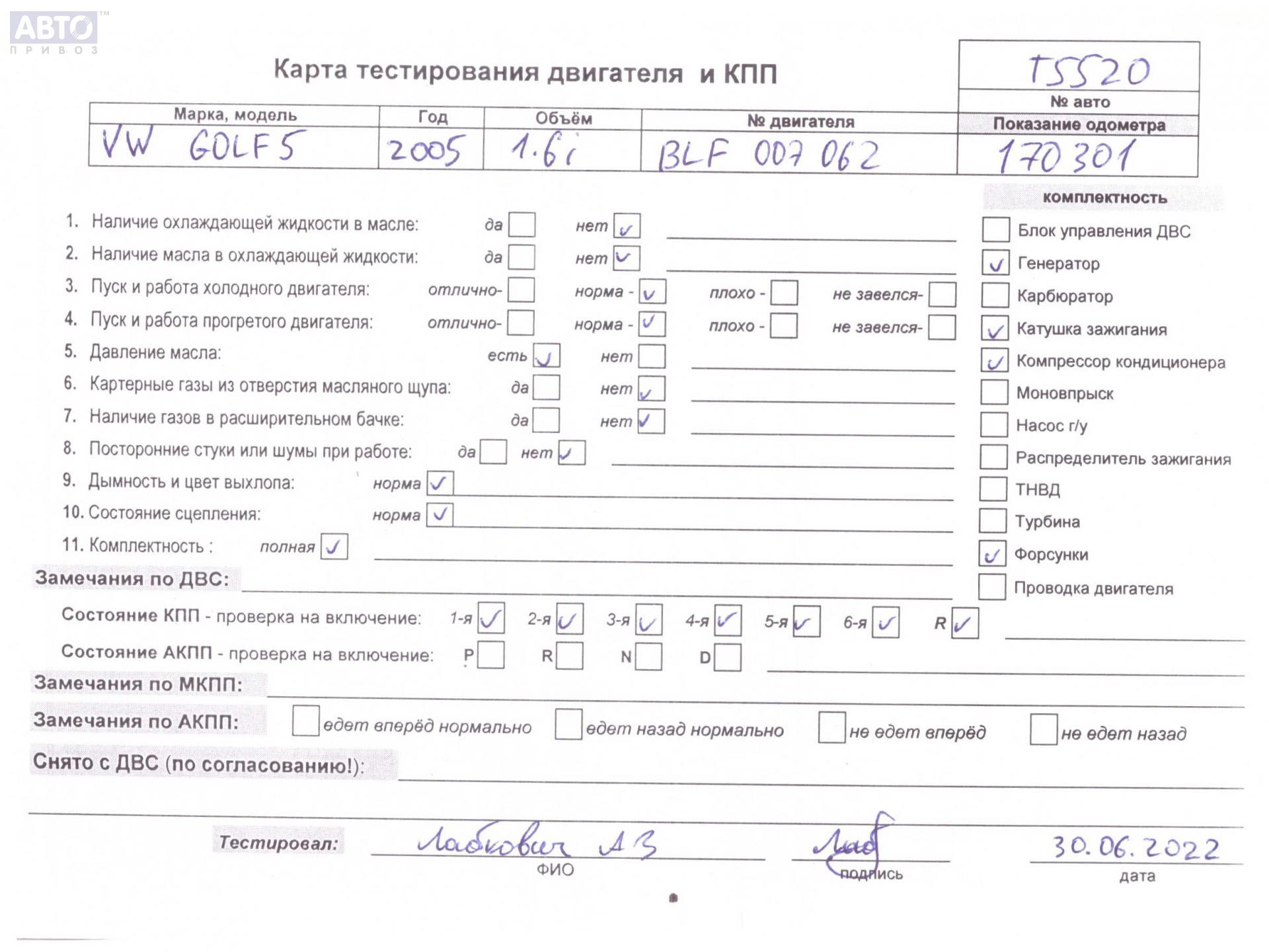 | Марка / Модель / Год: | Volkswagen Golf-5 2005 |