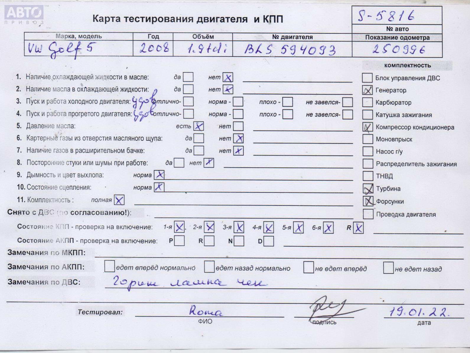 | Марка / Модель / Год: | Volkswagen Golf-5 2008 |