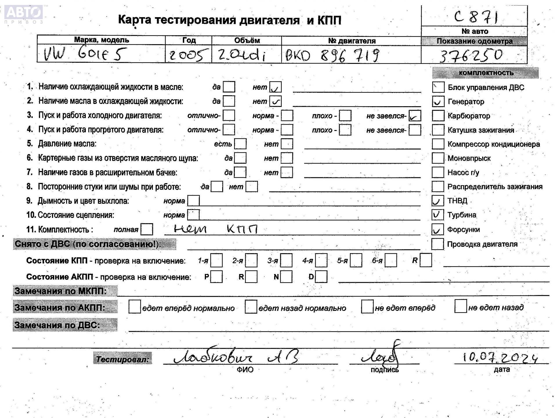 | Марка / Модель / Год: | Volkswagen Golf-5 2007 |