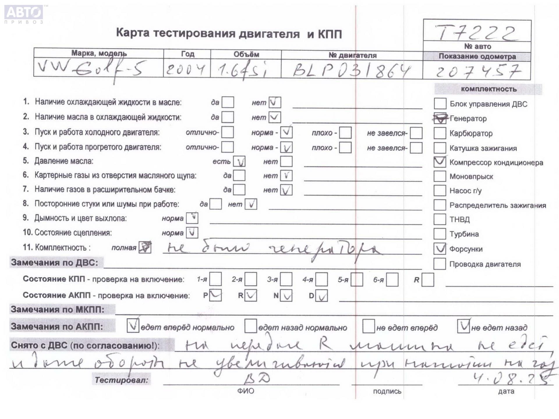 | Марка / Модель / Год: | Volkswagen Golf-5 2004 |