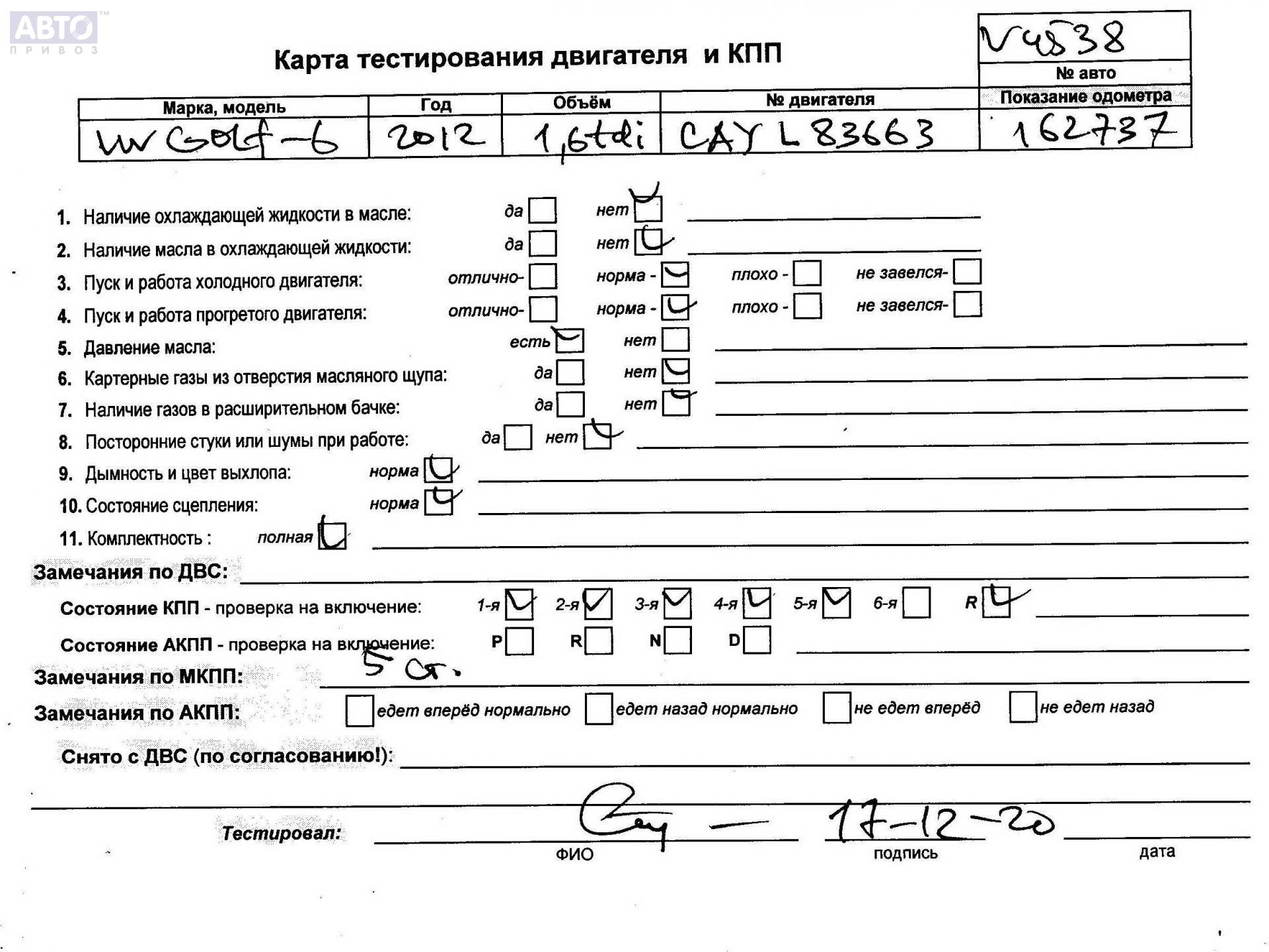 | Марка / Модель / Год: | Volkswagen Golf-6 2012 |