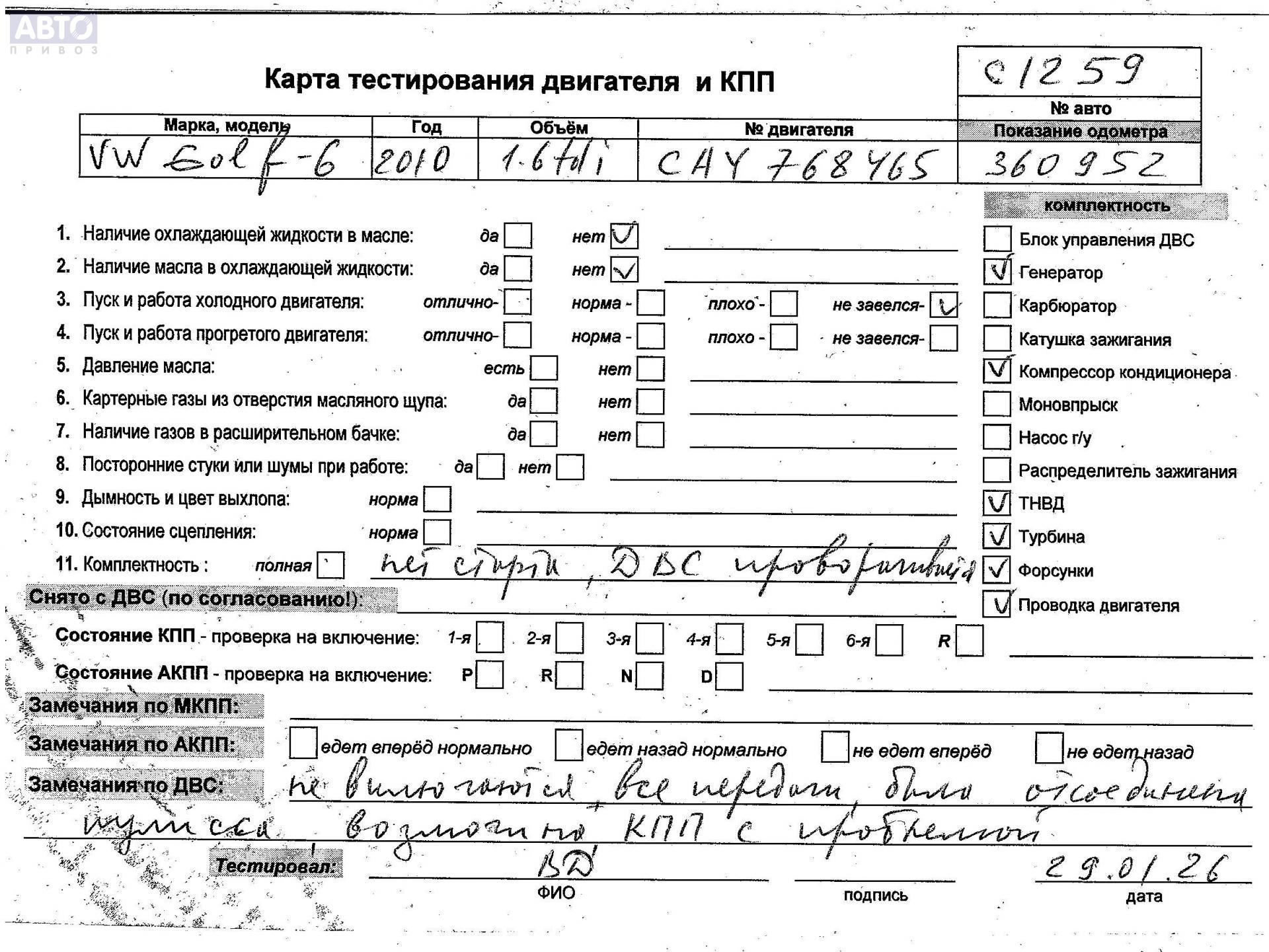 | Марка / Модель / Год: | Volkswagen Golf-6 2010 |