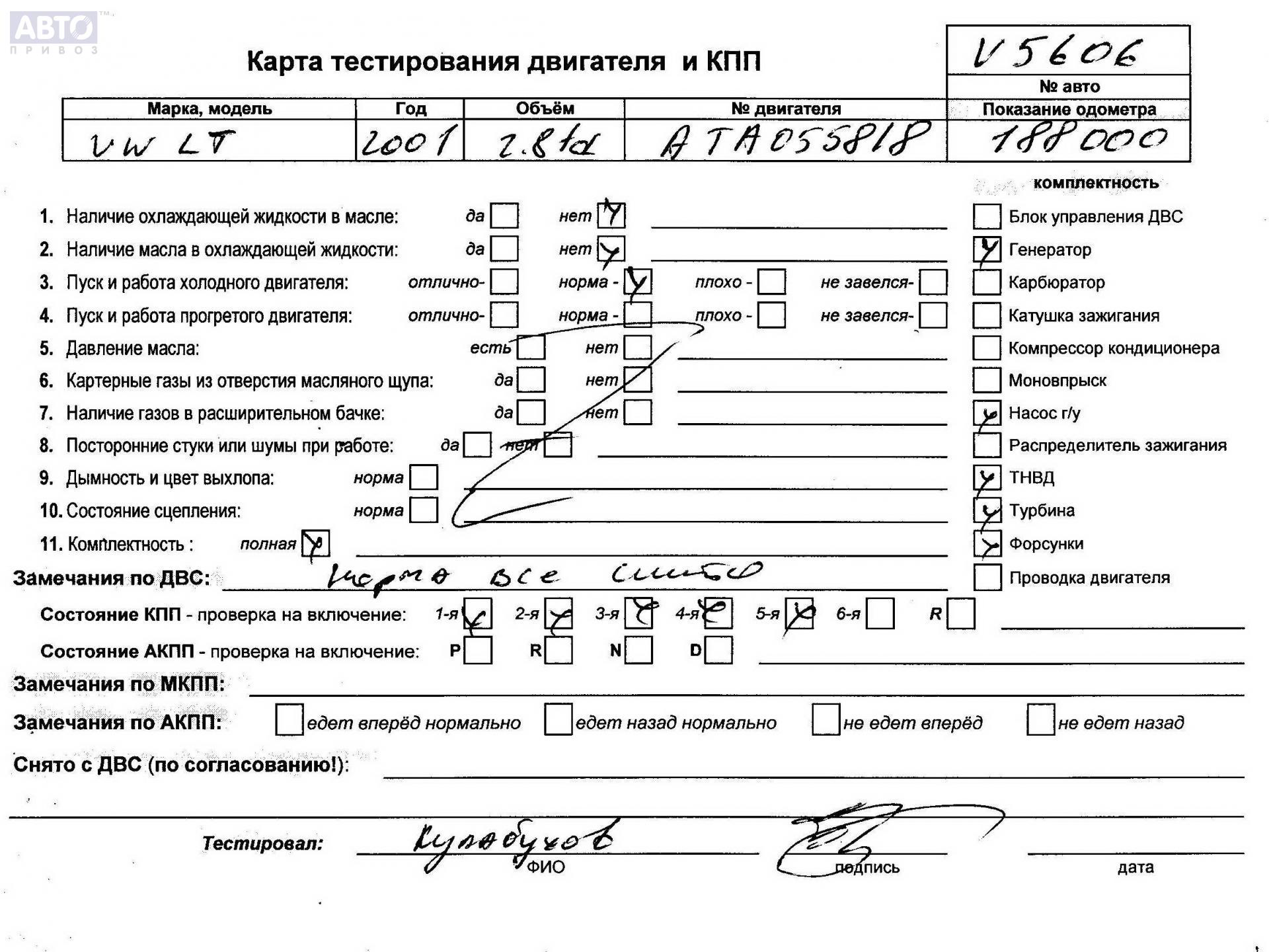 | Автомобиль / VIN: | V5606 WV1ZZZ2DZ2H008866 |