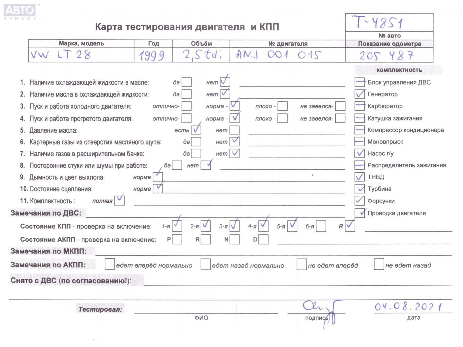 | Марка / Модель / Год: | Volkswagen LT (1996-2006) 1999 |