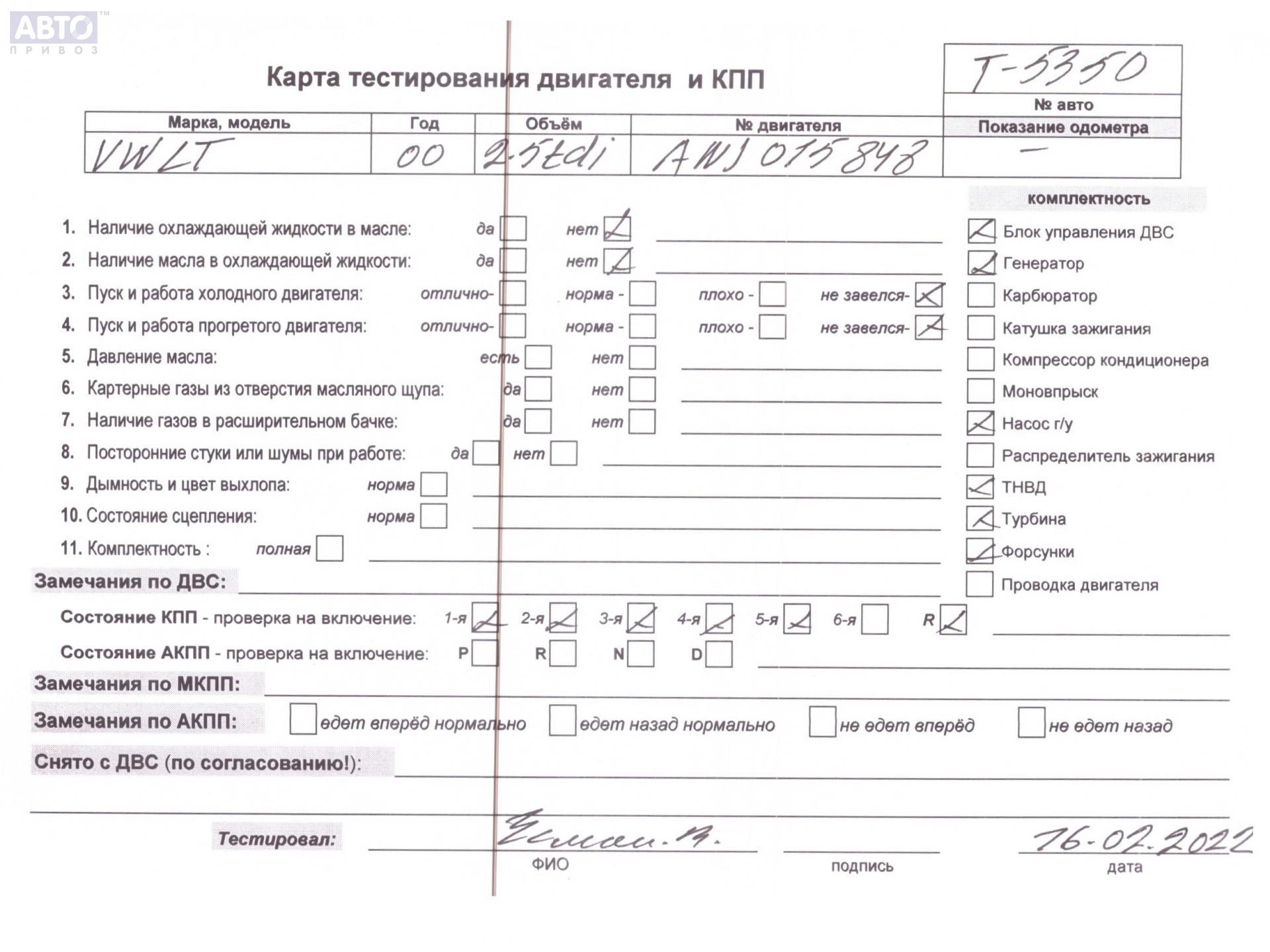 | Автомобиль / VIN: | T5350 WV1ZZZ2DZYH025419 |