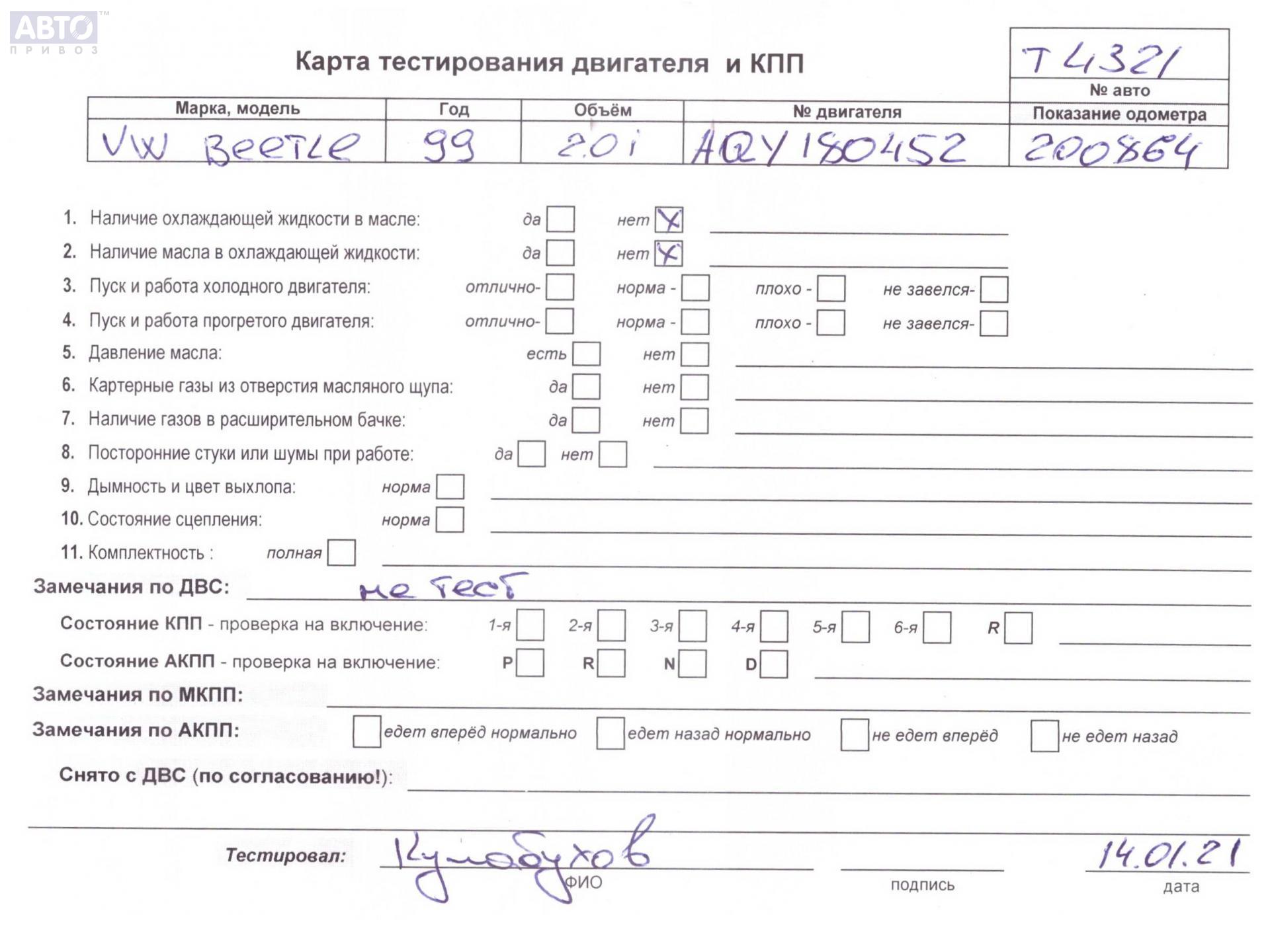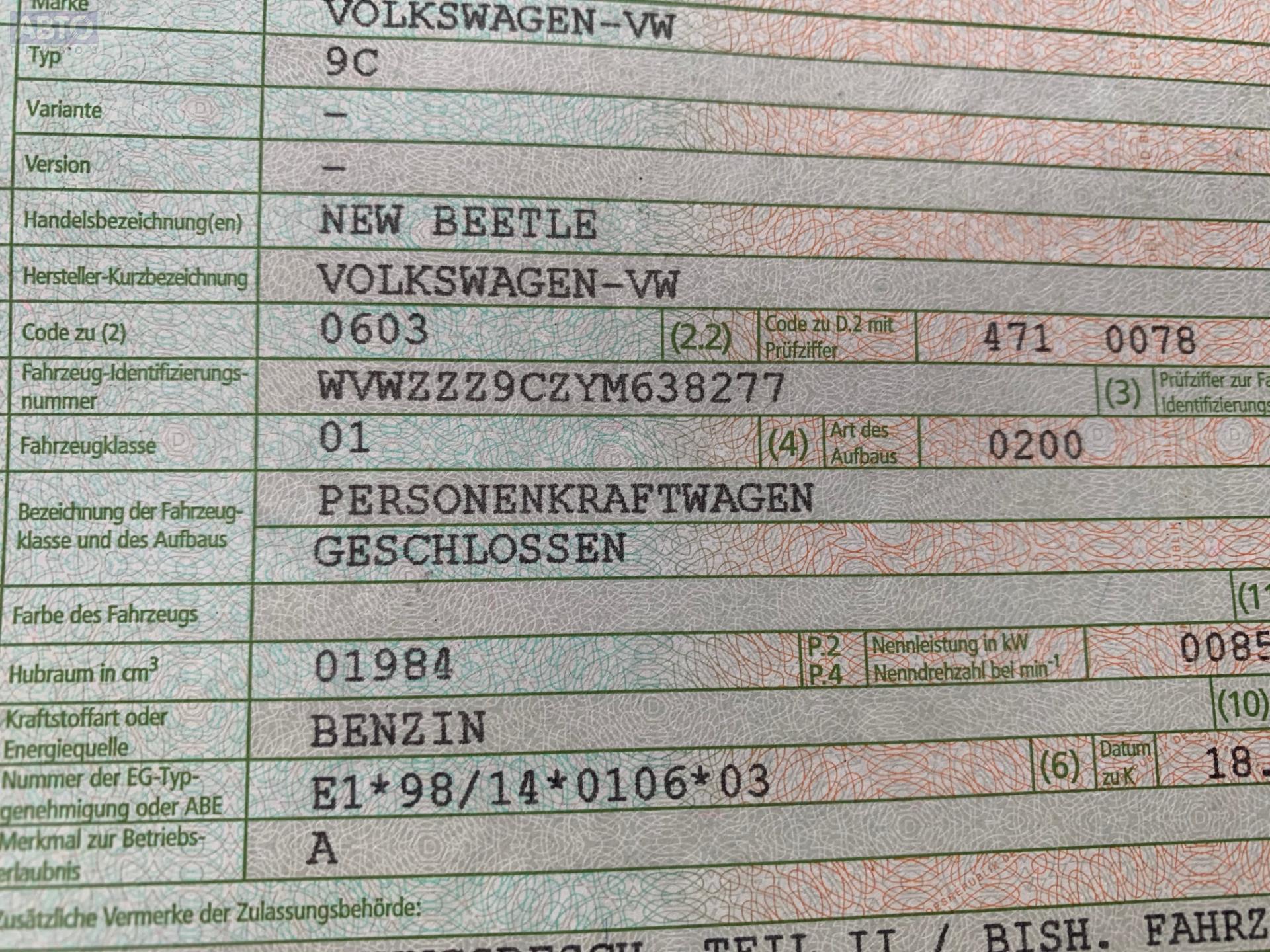 | Марка / Модель / Год: | Volkswagen New Beetle 1999 |