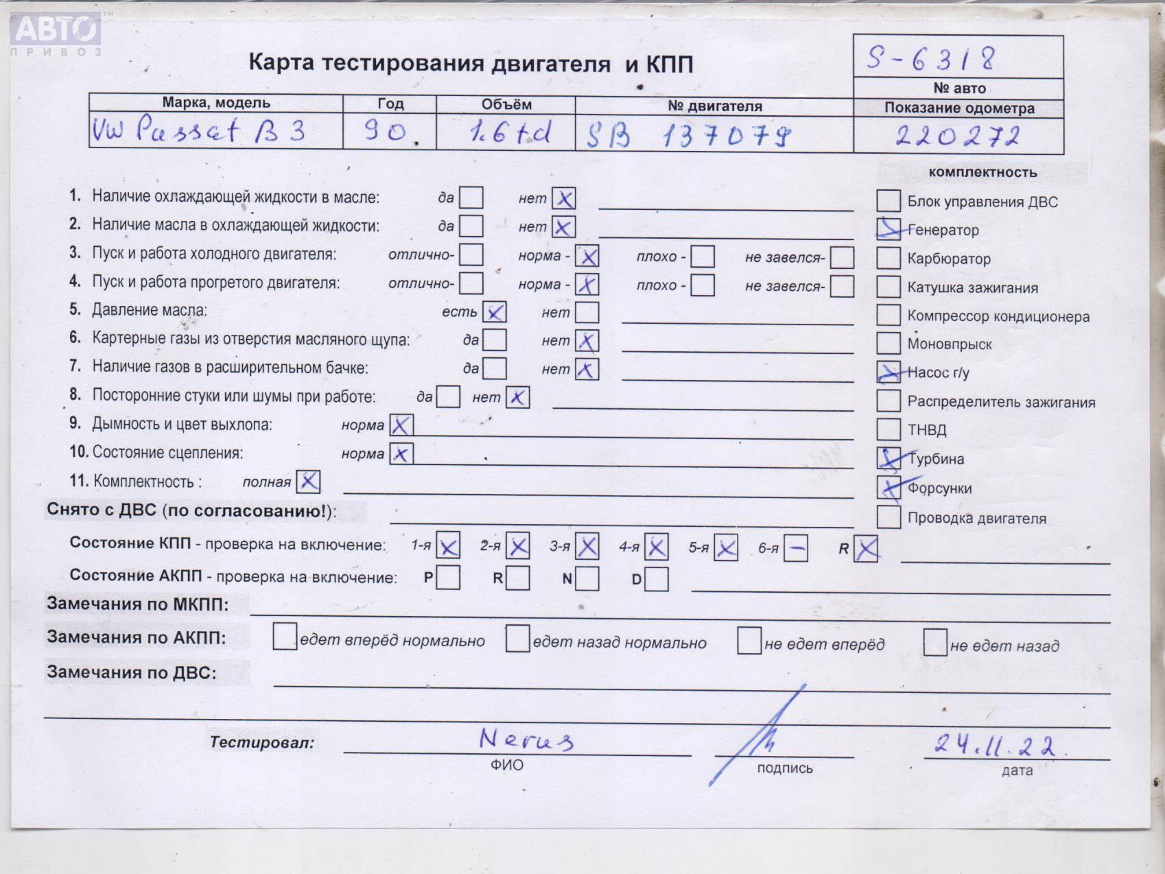 | Марка / Модель / Год: | Volkswagen Passat B3 1990 |