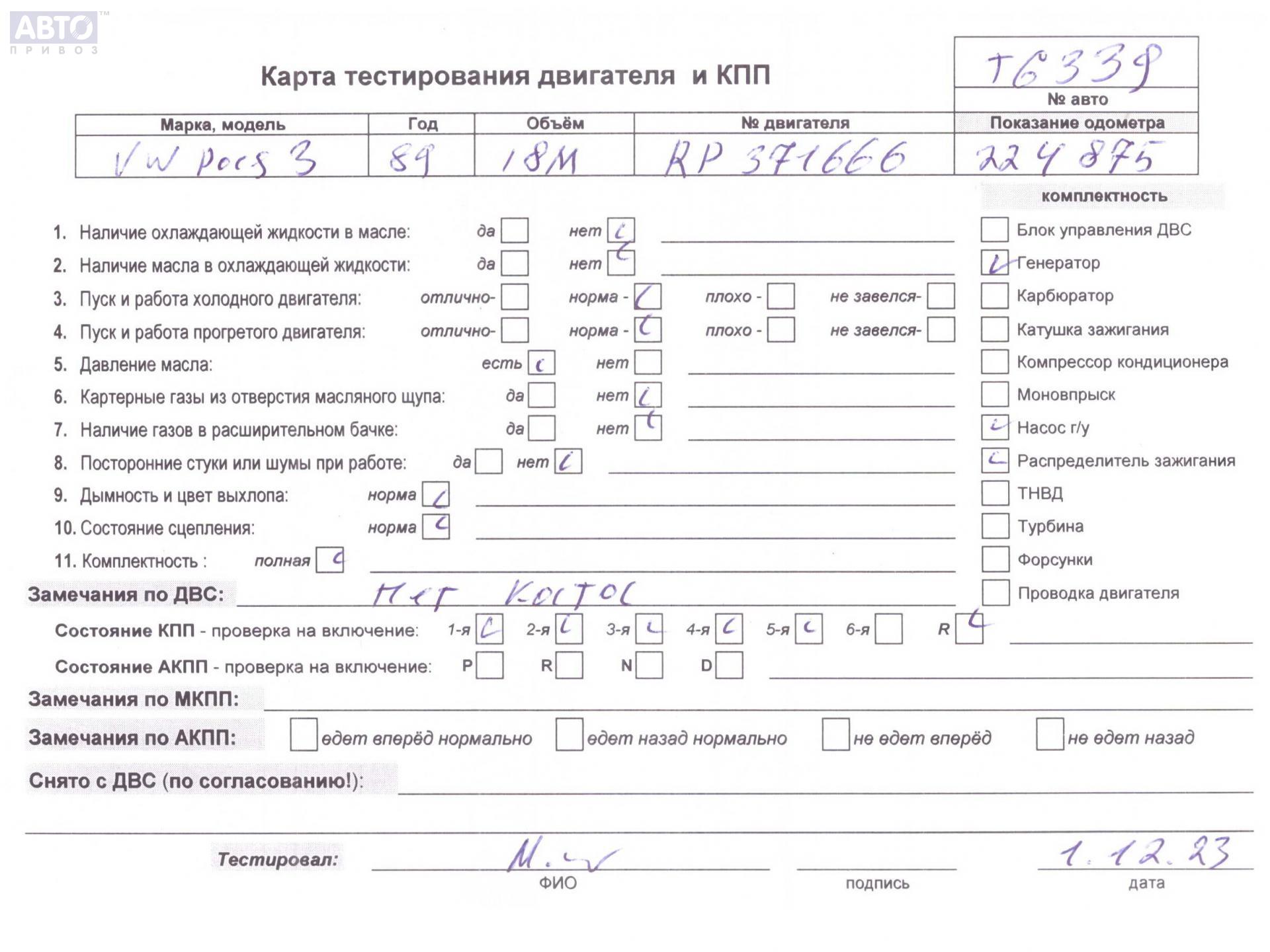 | Автомобиль / VIN: | T6339 WVWZZZ31ZLB042709 |