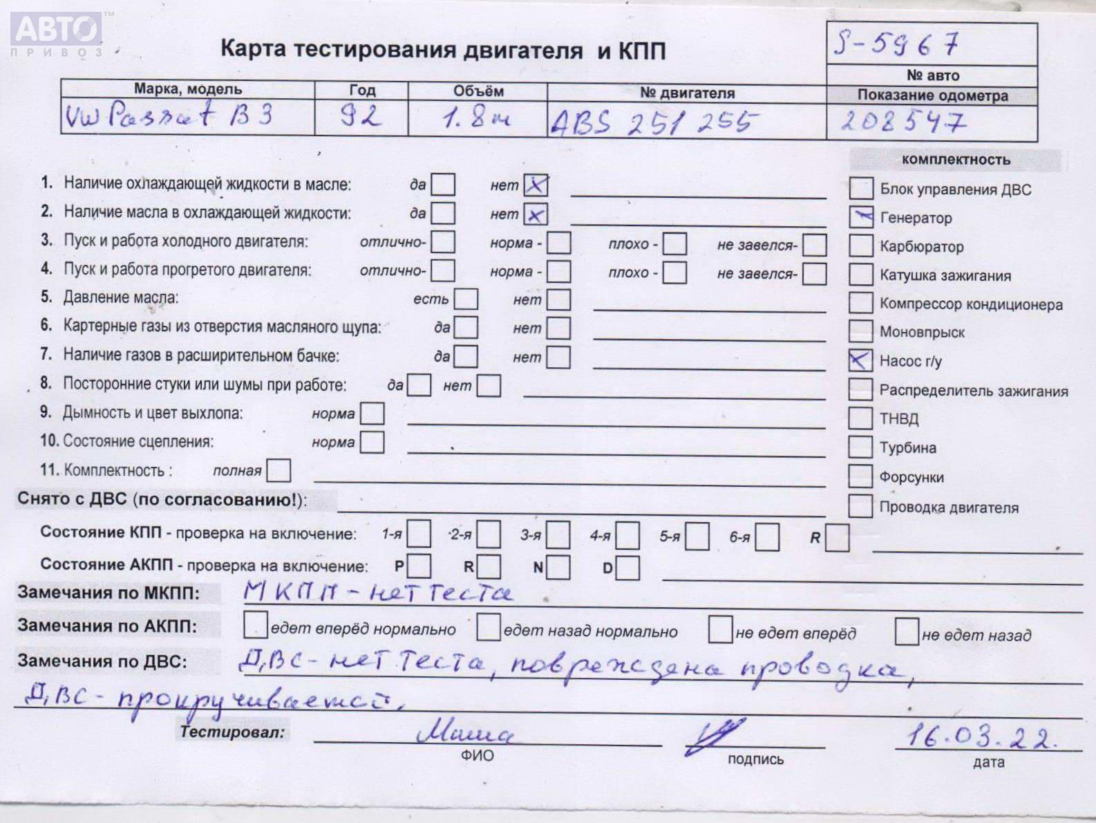 | Марка / Модель / Год: | Volkswagen Passat B3 1992 |