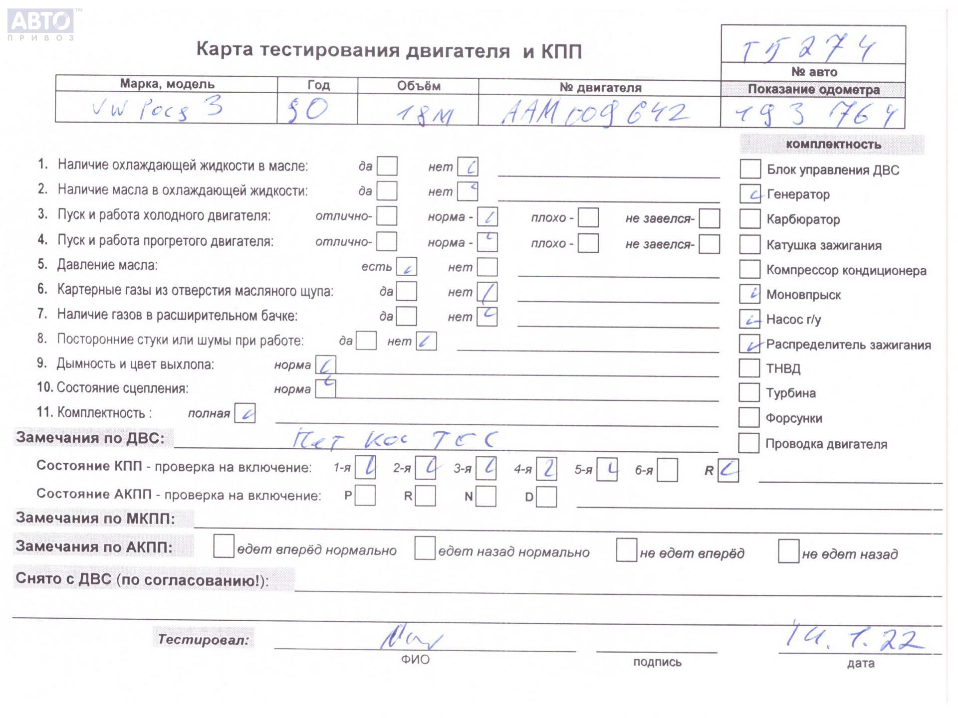 | Автомобиль / VIN: | T5274 WVWZZZ31ZMB164489 |