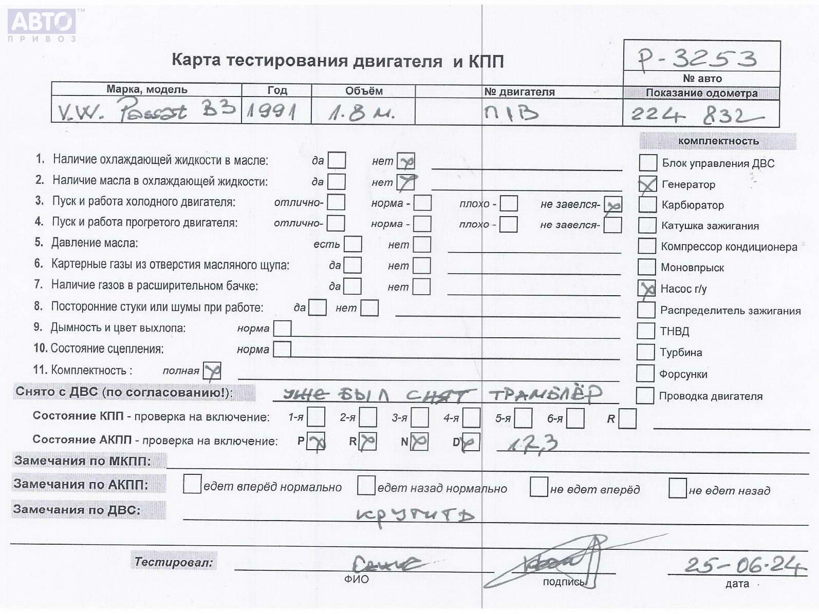 | Марка / Модель / Год: | Volkswagen Passat B3 1991 |