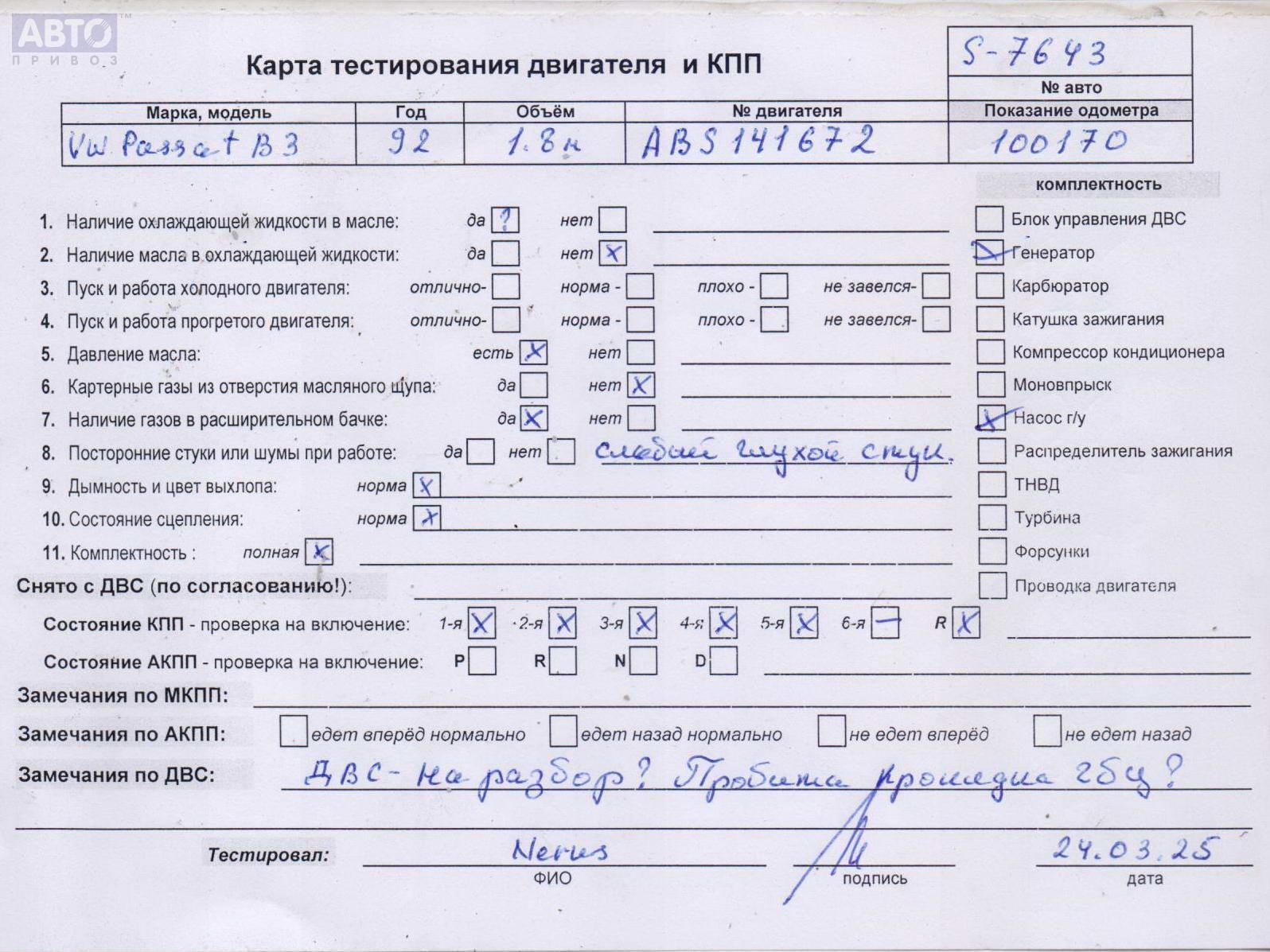 | Марка / Модель / Год: | Volkswagen Passat B3 1992 |