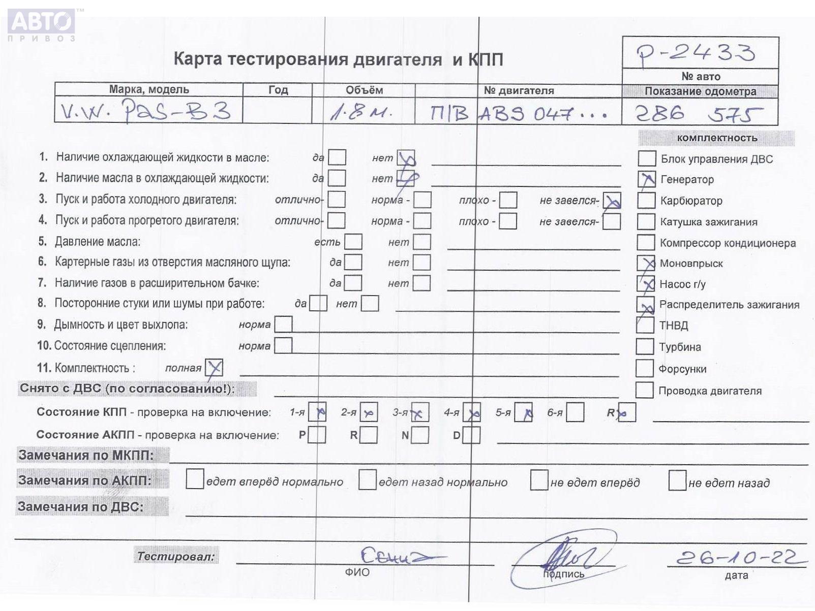 | Автомобиль / VIN: | P2433 WVWZZZ31ZNB036025 |