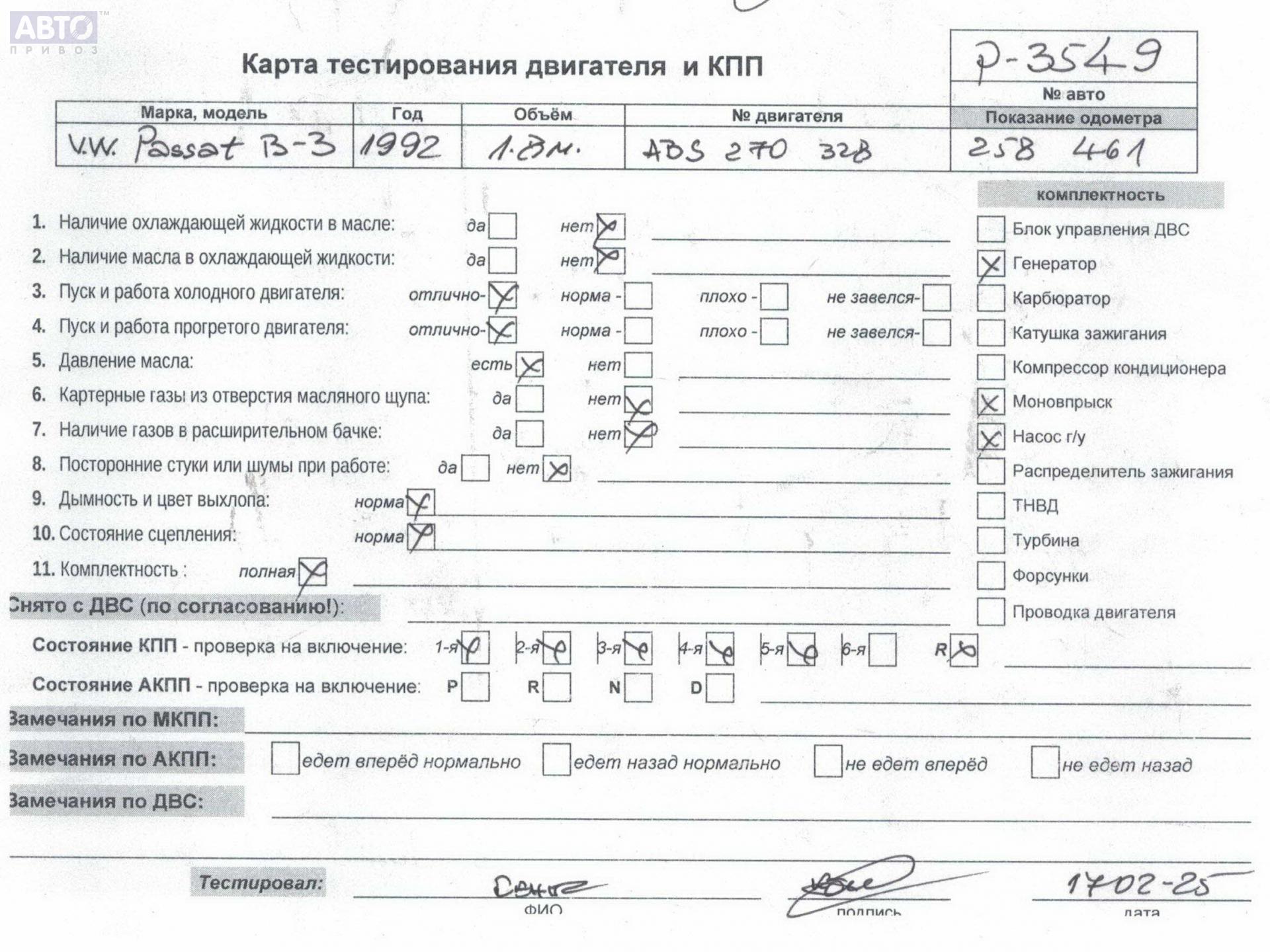 | Марка / Модель / Год: | Volkswagen Passat B3 1992 |
