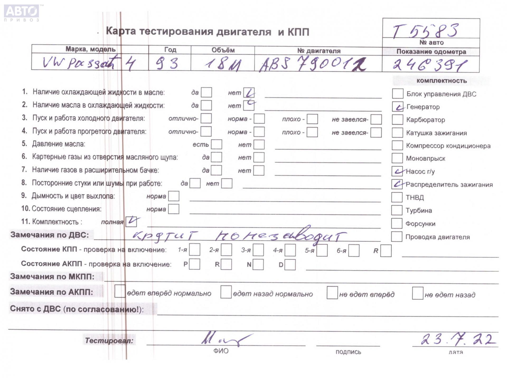 | Марка / Модель / Год: | Volkswagen Passat B4 1993 |