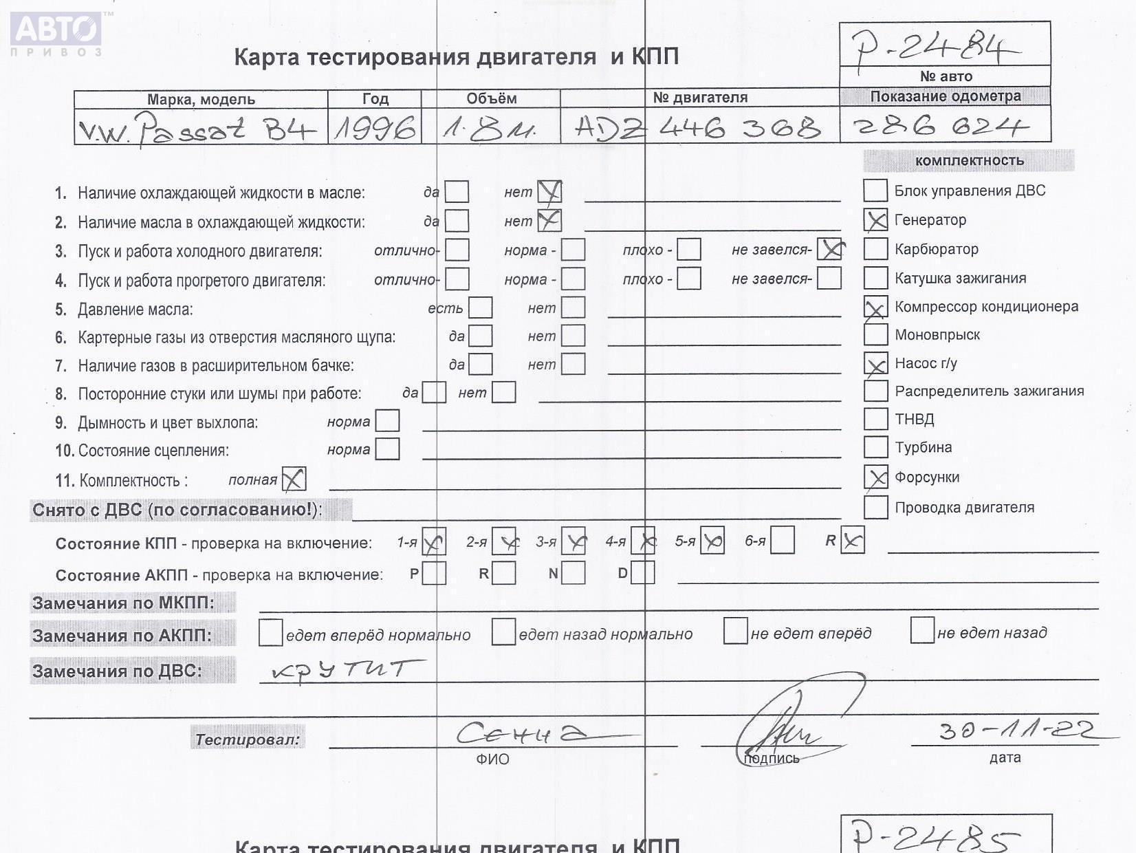 | Марка / Модель / Год: | Volkswagen Passat B4 1996 |