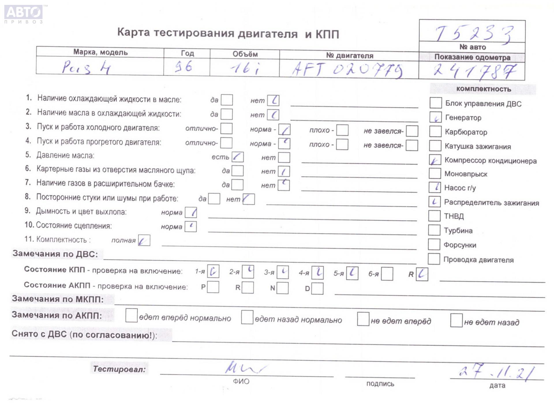 | Марка / Модель / Год: | Volkswagen Passat B4 1996 |