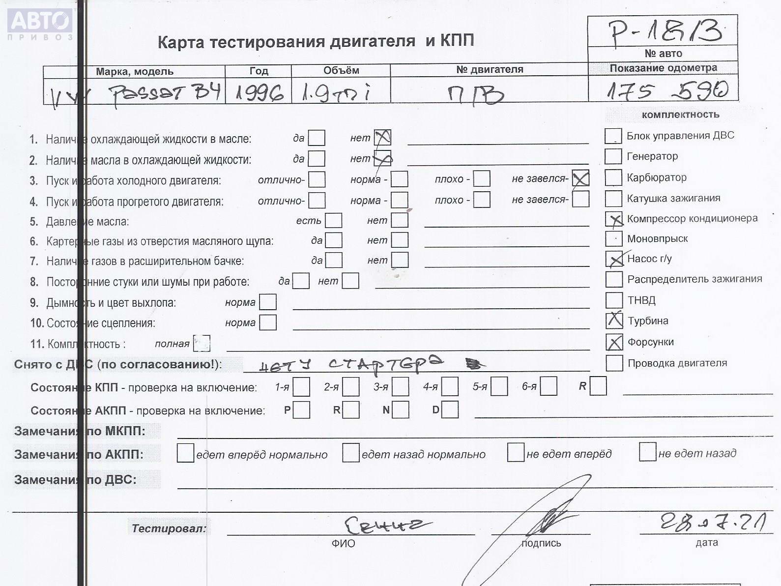 | Марка / Модель / Год: | Volkswagen Passat B4 1996 |