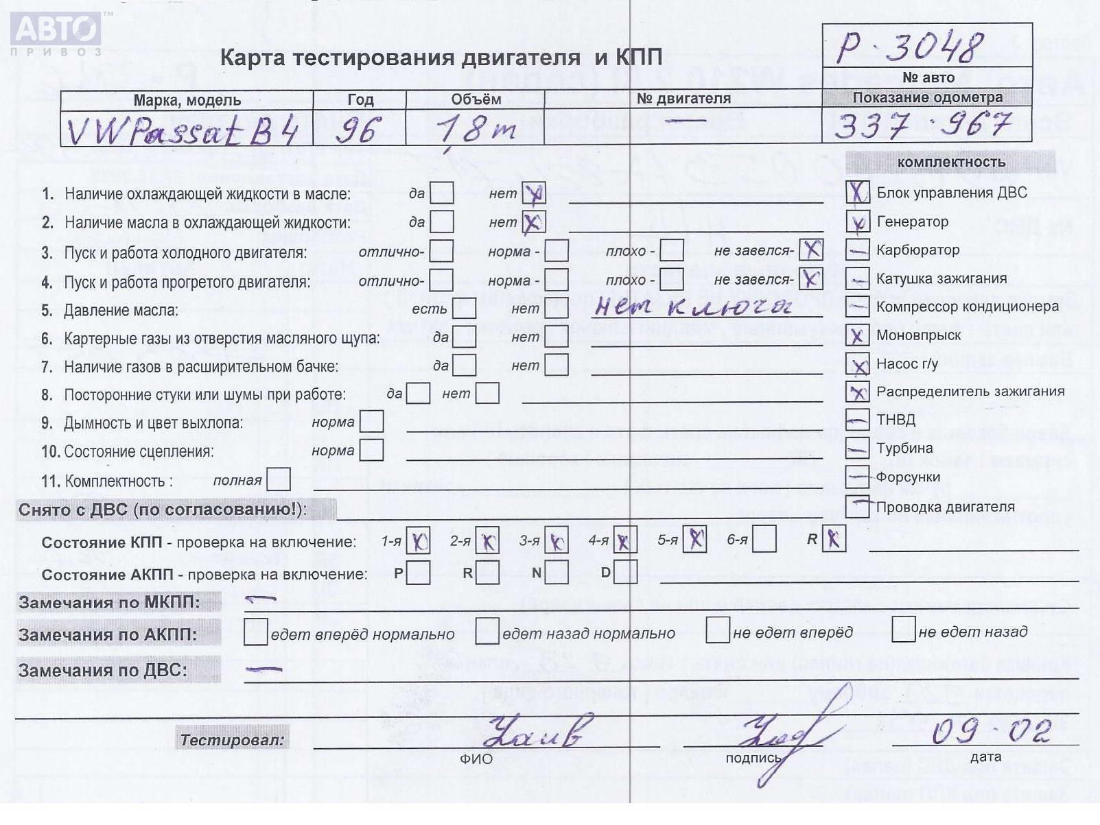 | Марка / Модель / Год: | Volkswagen Passat B4 1996 |