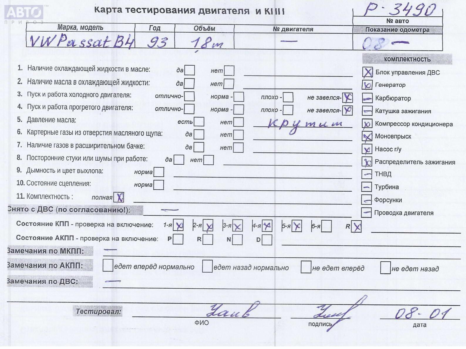| Марка / Модель / Год: | Volkswagen Passat B4 1996 |