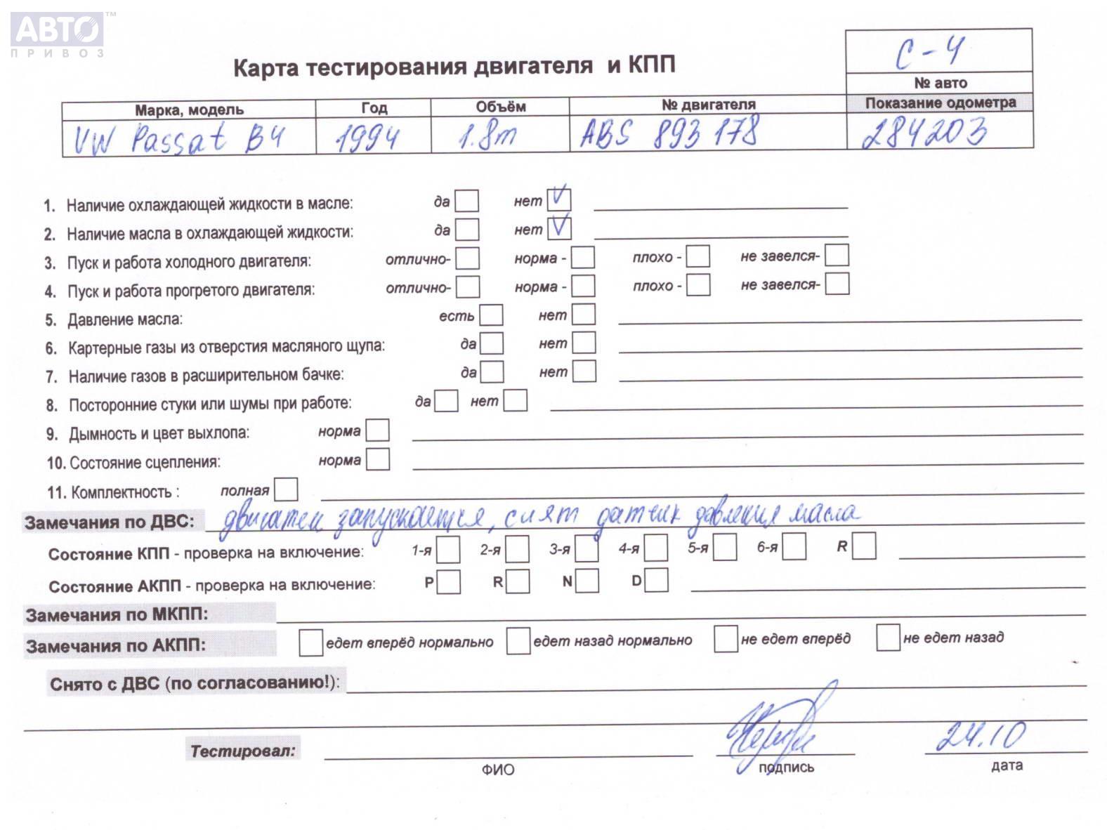 | Марка / Модель / Год: | Volkswagen Passat B4 1994 |