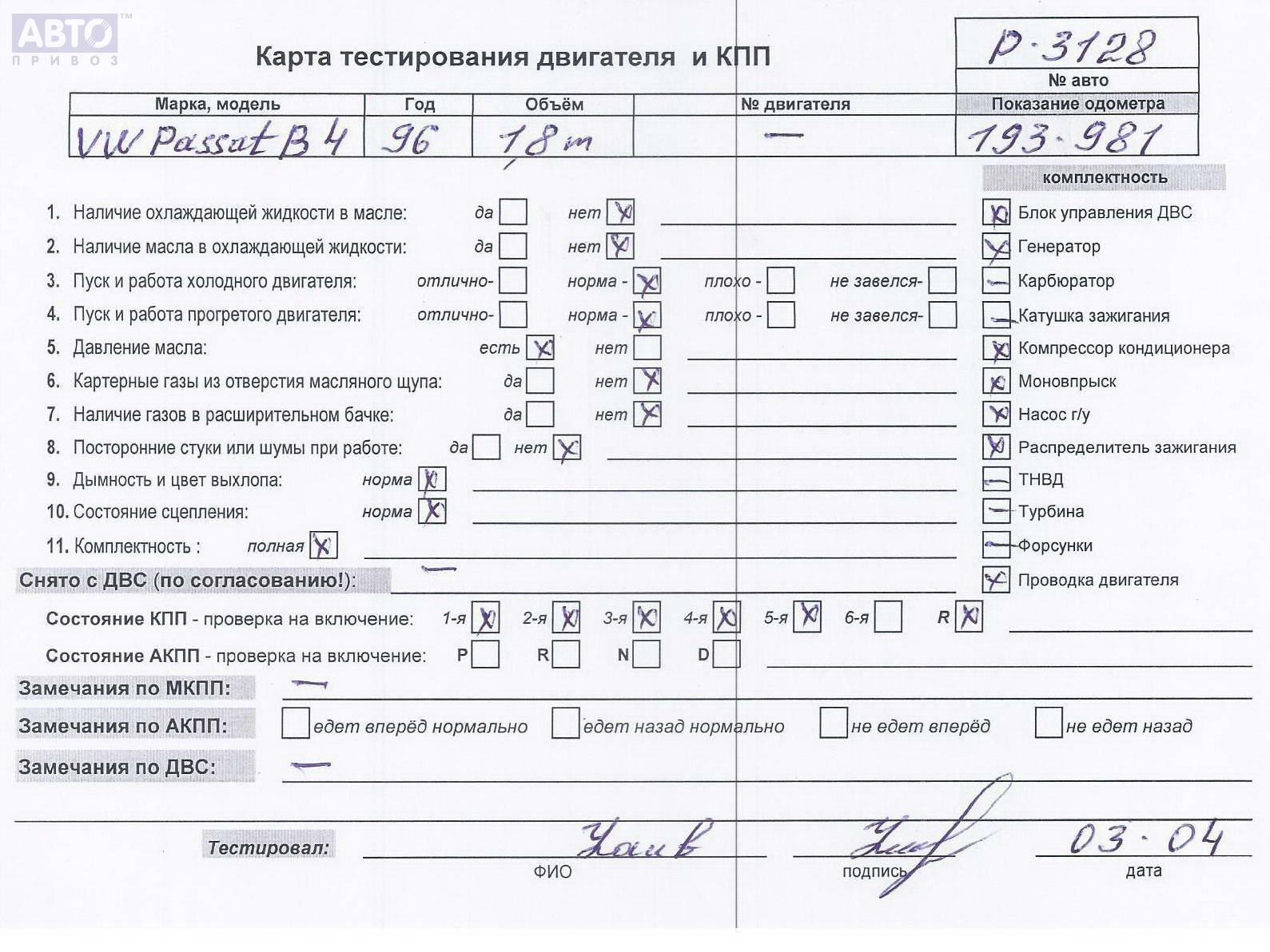 | Марка / Модель / Год: | Volkswagen Passat B4 1996 |