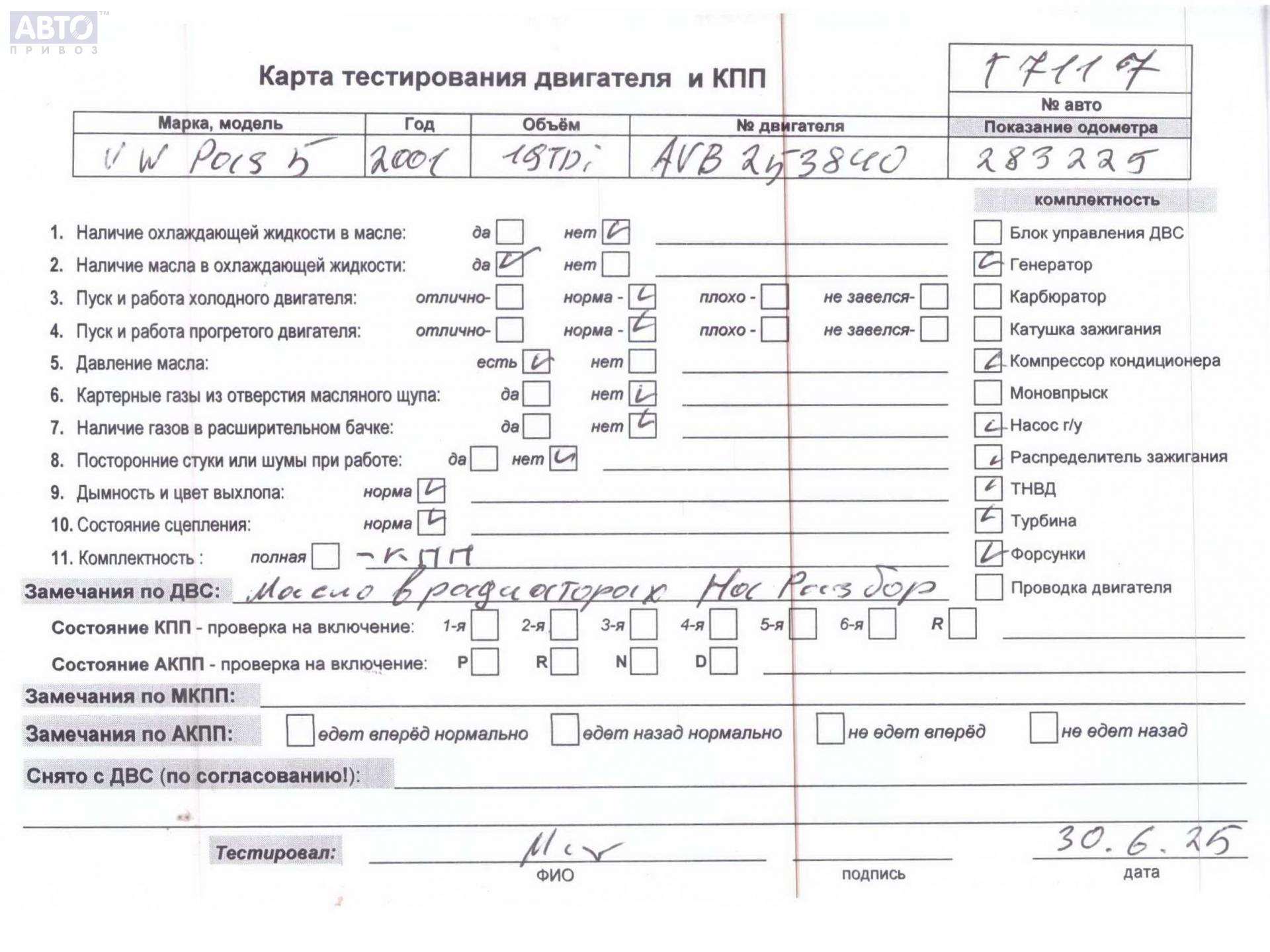 | Автомобиль / VIN: | T7117 WVWZZZ3BZ4E175277 |