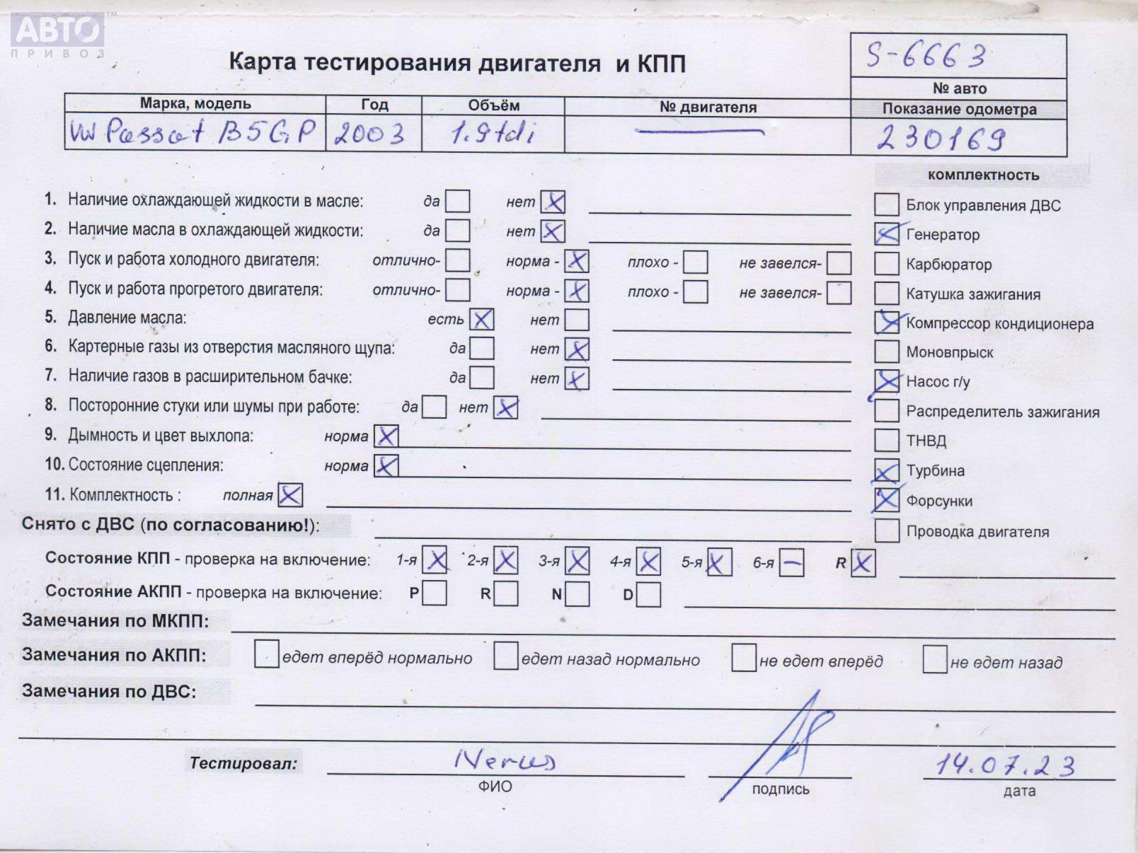 | Марка / Модель / Год: | Volkswagen Passat B5+ (GP) 2003 |